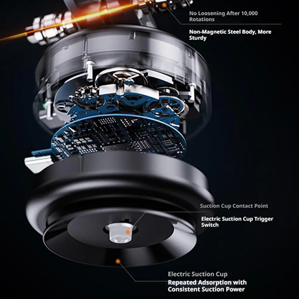 3.: Sucção elétrica inovadora e carregamento tipo C: revolucione sua configuração com nossa base exclusiva de ventosa elétrica.Apresentando um sistema de exaustão a vácuo acionado por energia, garante uma fixação fácil e segura em várias superfícies lisas.A base também é convenientemente recarregável via Type-C, proporcionando desempenho confiável e duradouro com uma única carga.