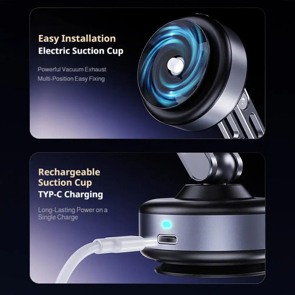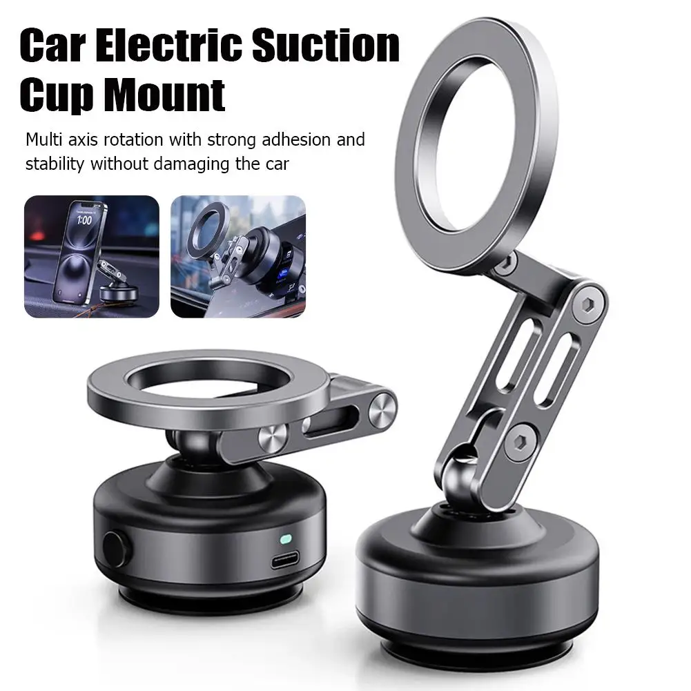 Suporte de Telefone para Carro Dobrável com Adsorção Magnética e Rotação, Suporte Elétrico com Ventosa para Smartphone