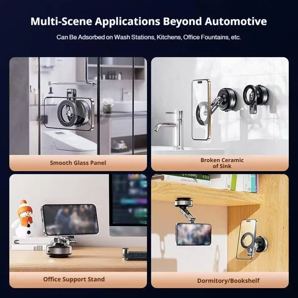 5.: Estabilidade aprimorada e design fácil de usar: Construído para confiabilidade, nosso suporte para telefone supera significativamente os modelos mais antigos em estabilidade, apresentando um eixo central universal seguro para suporte inabalável.A forte adsorção garante que seu dispositivo permaneça firmemente no lugar, enquanto o mecanismo de sucção sem rastros torna a instalação e remoção simples e descomplicadas.