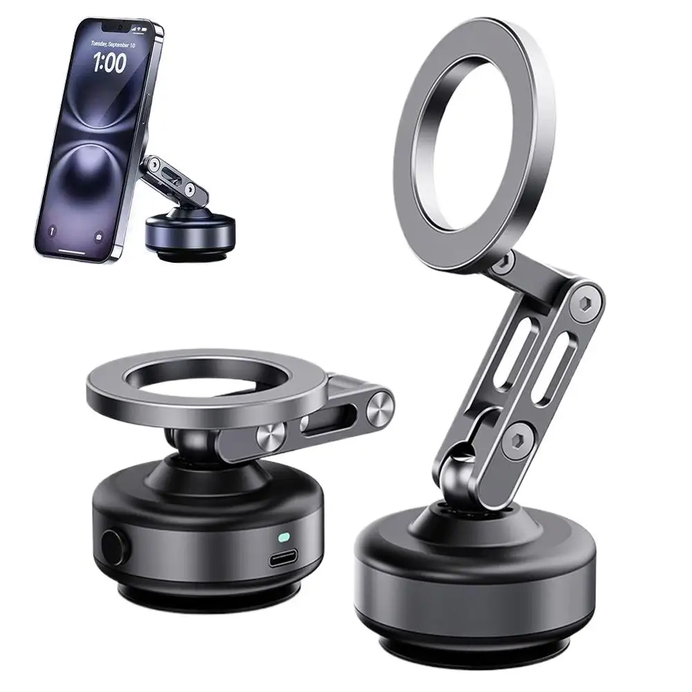 - > Suporte de Telefone para Carro Dobrável com Adsorção Magnética e Rotação, Suporte Elétrico com Ventosa para Smartphone