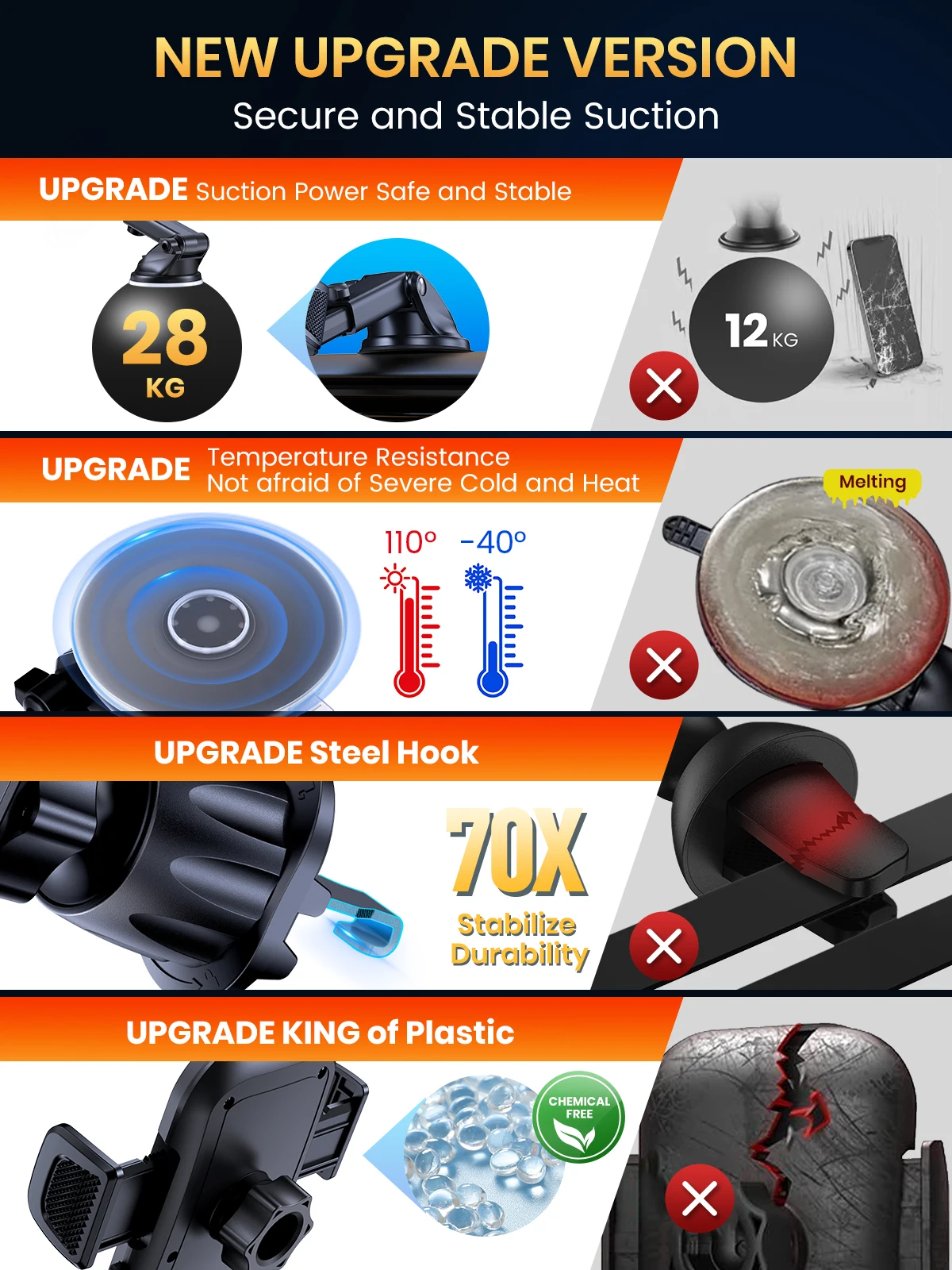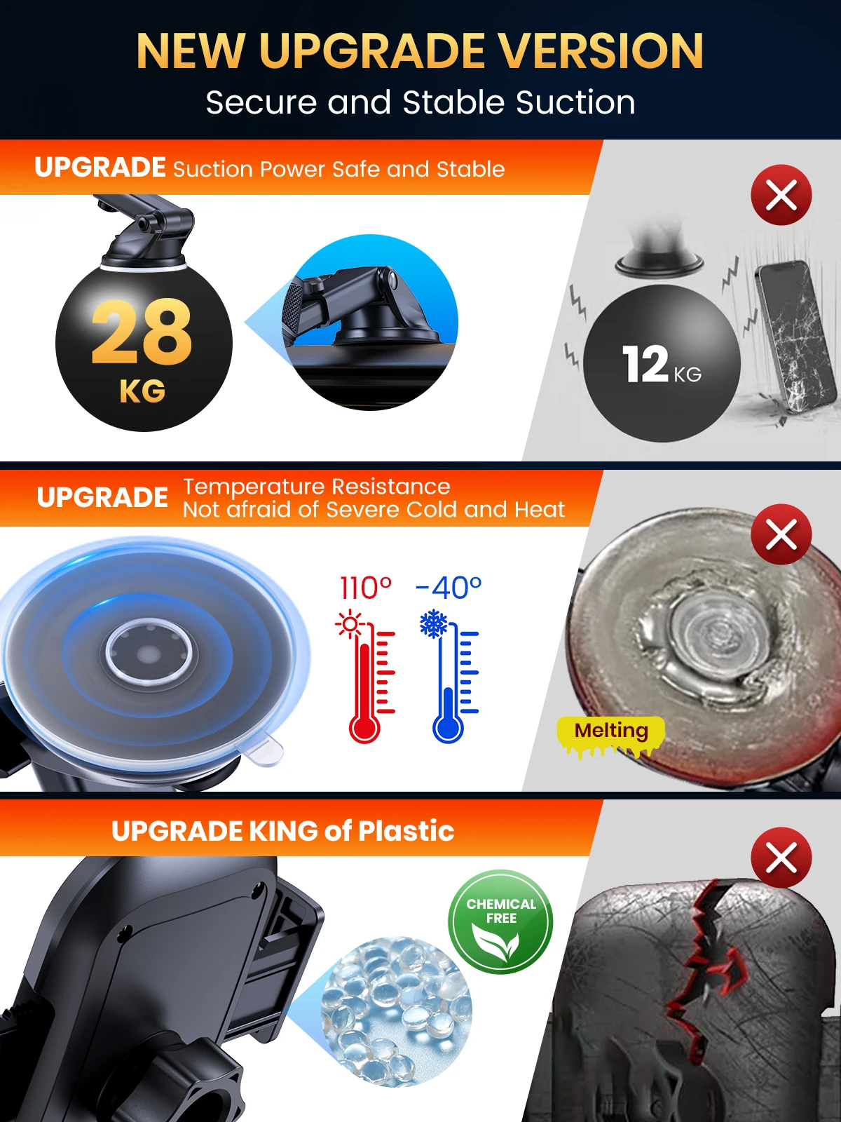- > Suporte de telefone para carro TOPK 4 em 1, suporte super estável para painel de carro/pára-brisas/a ventilação de ar compatível com todos os telefones celulares