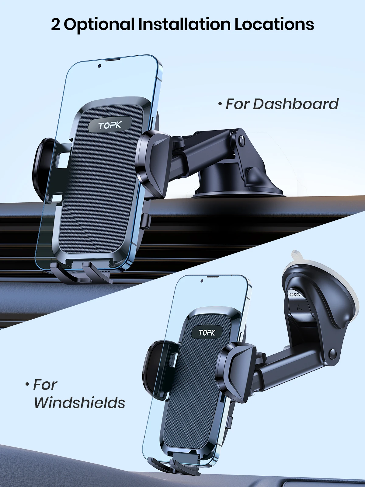 Suporte de telefone para carro TOPK 4 em 1, suporte super estável para painel de carro/pára-brisas/a ventilação de ar compatível com todos os telefones celulares