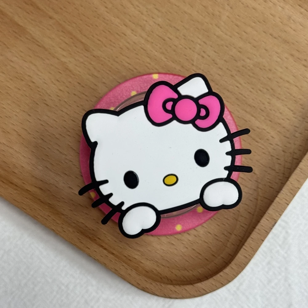 - > Suporte Magnético Griptok para Celular Magsafe Sanrio Hello Kitty para iPhone Samsung, Suporte Dobrável para Carregamento Sem Fio