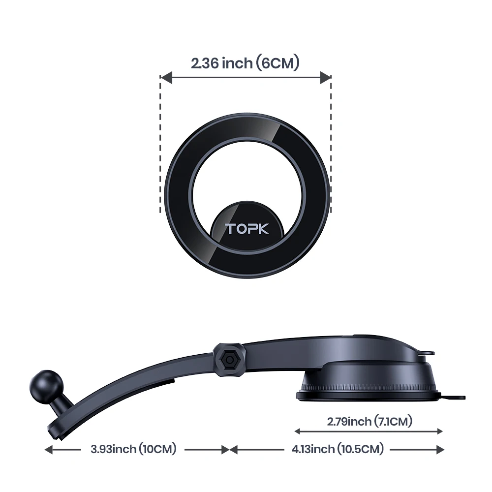 - > Suporte magnético para telefone de carro TOPK para Magsafe, ajustável horizontalmente e verticalmente operação com uma sola mão Suporte magnético para telefone para carro