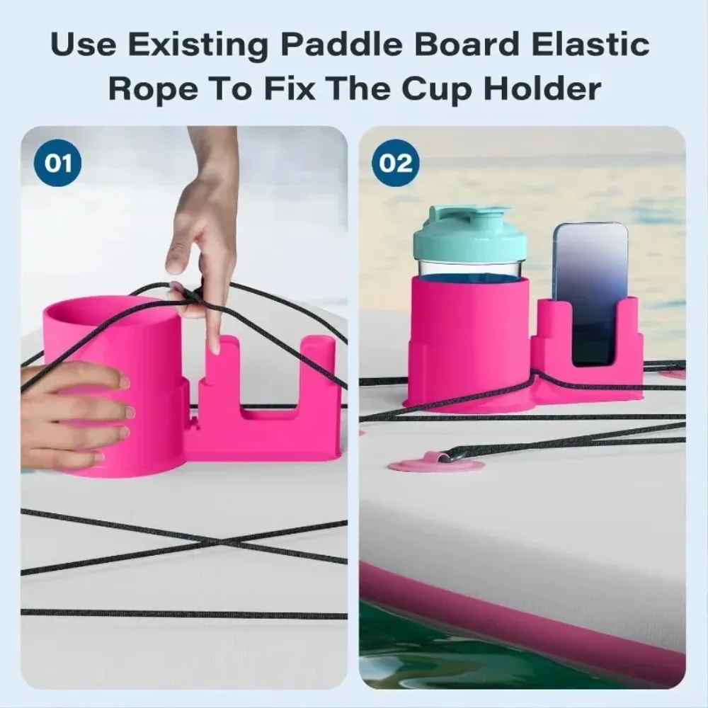 - > Suporte para Bebidas e Celular para Prancha de Surf com Cordão de Fixação, Suporte para Copo de Prancha de Surf, Acessórios para Caiaque e Barco