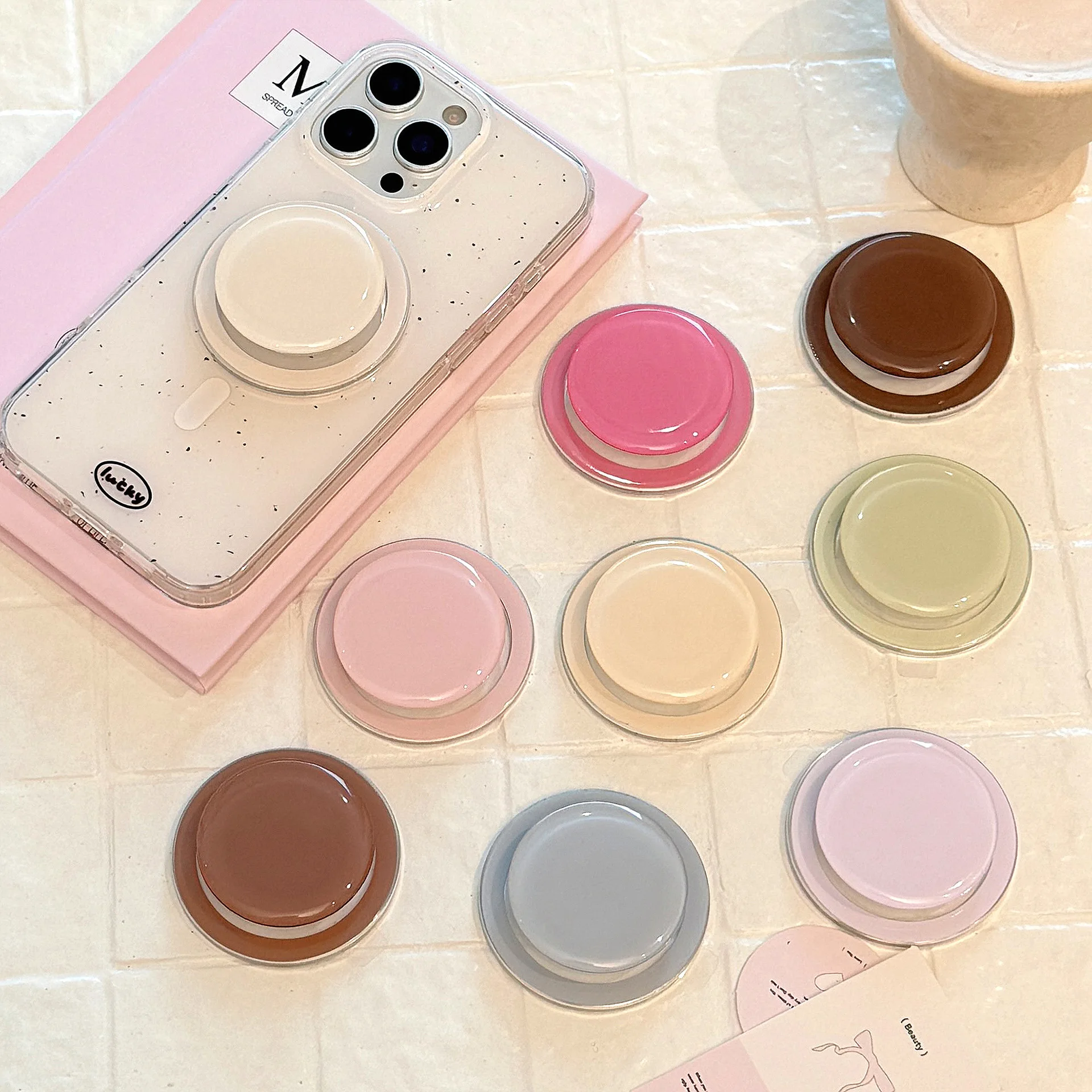 - > Suporte redondo coreano de cor sólida para Griptok magnético, suporte para carregamento sem fio de iPhone.