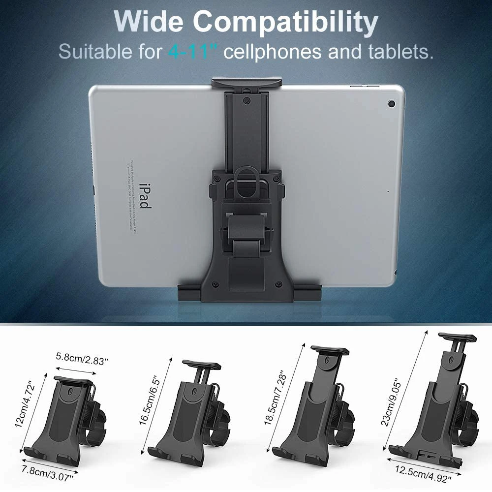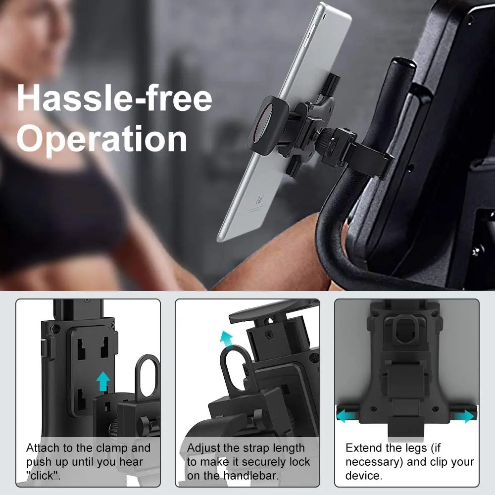 - > Suporte universal para esteira de bicicleta, suporte para ipad air 4 pro, academia interna, guidão, tablet, suporte para dispositivo móvel de 4 a 11 polegadas
