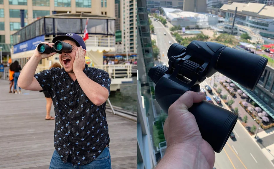Os binóculos são à prova d'água IPX6 e estão disponíveis para algumas condições ambientais aquosas, como usá-los em um caiaque, a bordo de um barco ou em uma trilha na chuva.