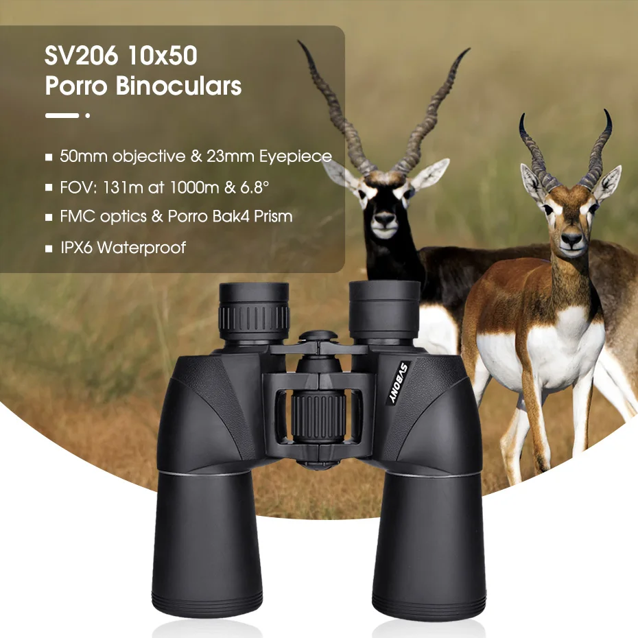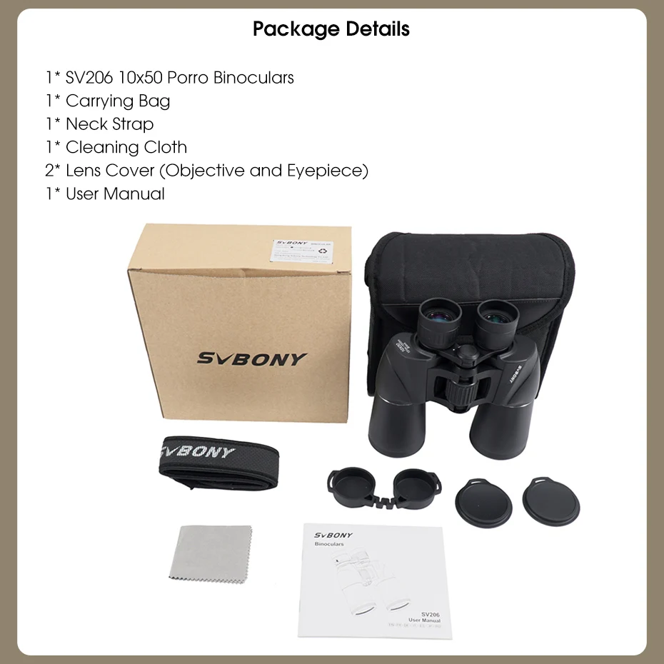 - > SVBONY SV206 Binóculos 10x50 com Material de Borracha, Binóculos com Óptica de Alta Qualidade Bak4 e FMC para Observadores Iniciantes de Aves