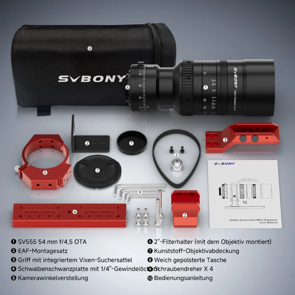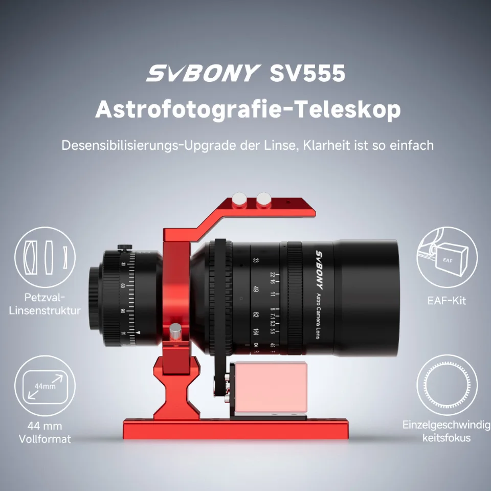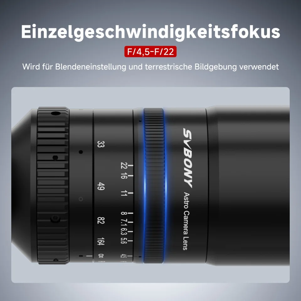 - > Svbony SV555 Telescópio APO Nova Atualização 243mm f/4.5 Lente de Câmera Telefoto para Astrofotografia de Imagem de Céu de Quadro Completo