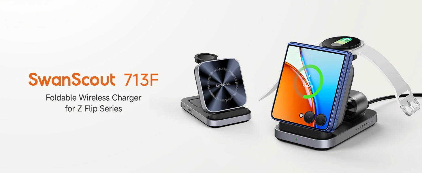 - > SwanScout 713F Carregador Sem Fio para Samsung Z Flip 7 6 FE 5 para Moto 60 50 Estação de Carregamento para Galaxy Watch 8 Classic Ultra 7 6