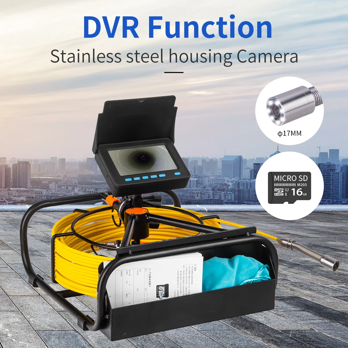 【Função de gravação DVR】: Câmera de inspeção de esgoto de parede de tubulação Slot para cartão SD integrado, cartão TF de 16 GB incluído, está disponível para visualizar vídeo ao vivo e salvar videoclipes e fotos. )