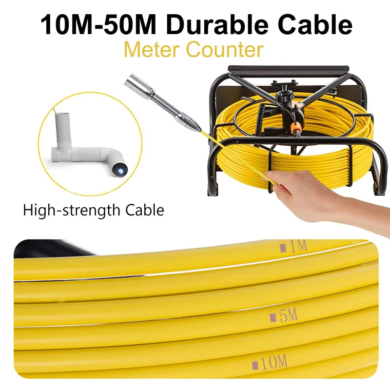 【Cabo 10M-50M opcional com contador de medidor】: A câmera de inspeção do endoscópio de tubulação SYANSPAN equipada com o cabo em escala pode mostrar o comprimento do cabo, pode fazer com que você encontre o local dos problemas com mais facilidade. Há 10M/20M/30M/40M/50M de comprimento diferente para escolher. (Existem medidores impressos no cabo)