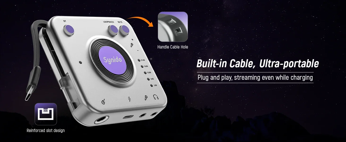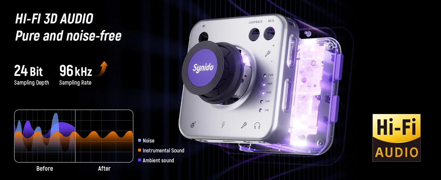 O Synido Live Dock A20 é uma interface de áudio de gravação de instrumento portátil com um chip dual-core e um núcleo DSp de 32 bits de alto desempenho.possui conversão AD/DA independente de alto desempenho que suporta amostragem de áudio de 24 bits e 96 kHzaudio.
