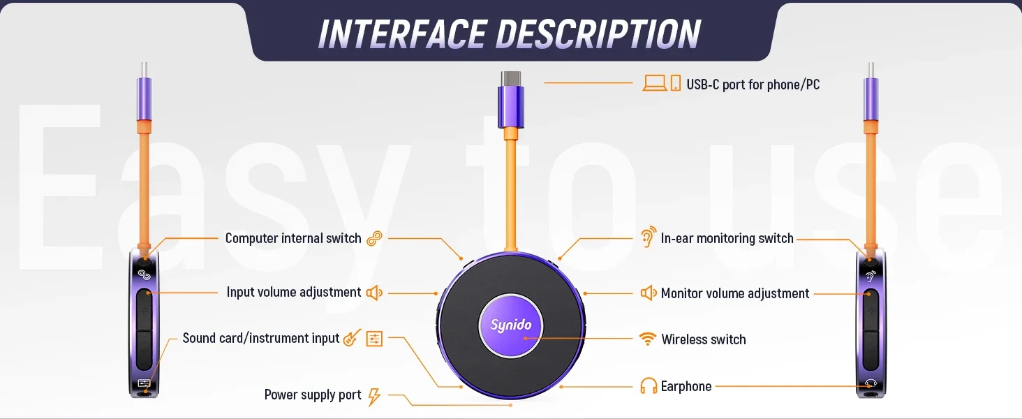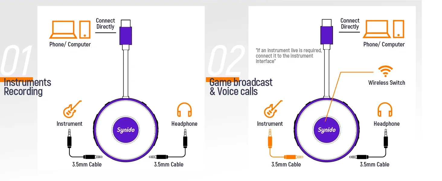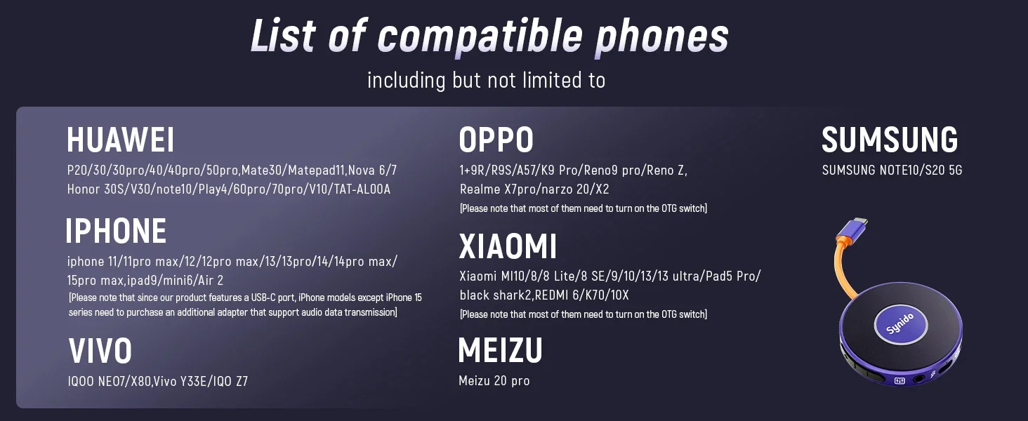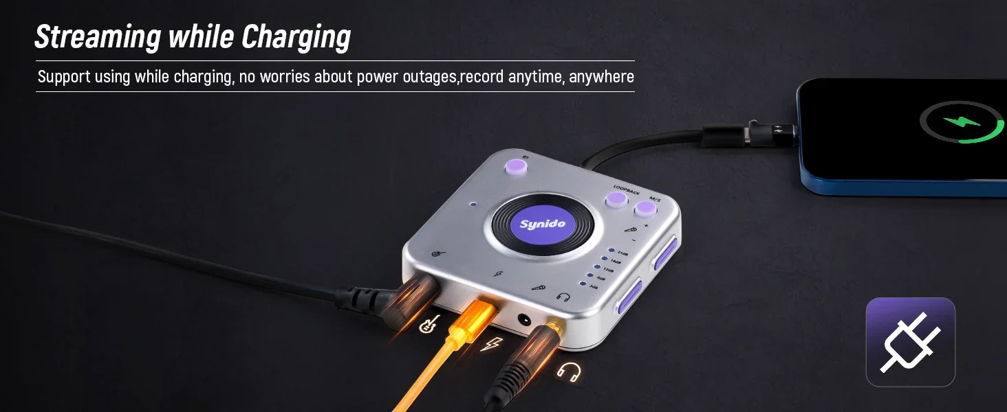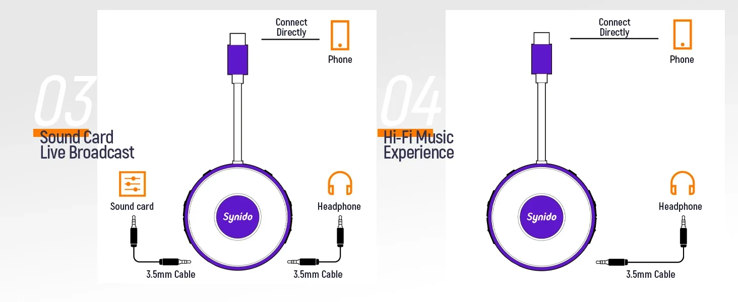 - > Synido Live Dock A10/A20 Adaptador de áudio com USB-C Gravação de música Interface de áudio portátil para iPhone PC computador Android telefones