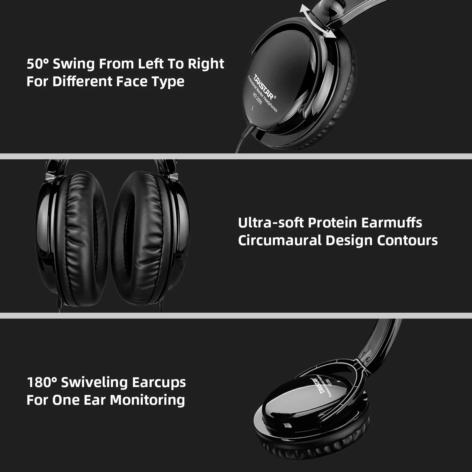 O fone de ouvido é tratado com um sofisticado acabamento UV de alto brilho.A superfície geral é preta espelhada de alto brilho.O estilo elegante e moderno é o destaque dos fones de ouvido Takstar HD2000 Studio Monitor.