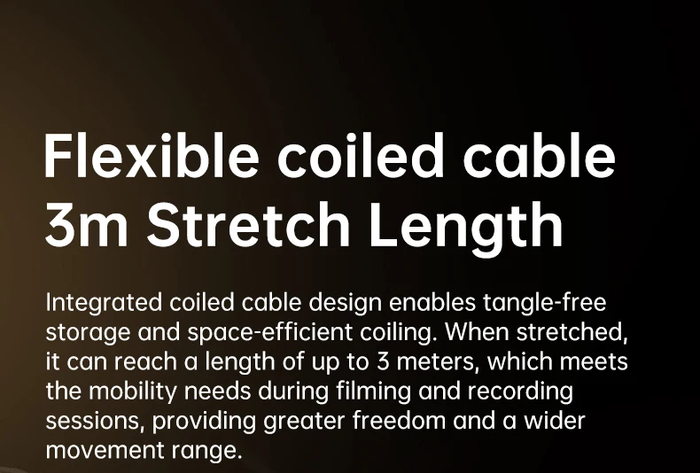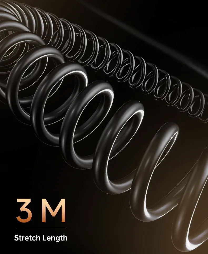 • O cabo enrolado compacto flexiona-se livremente sem emaranhar problemas.