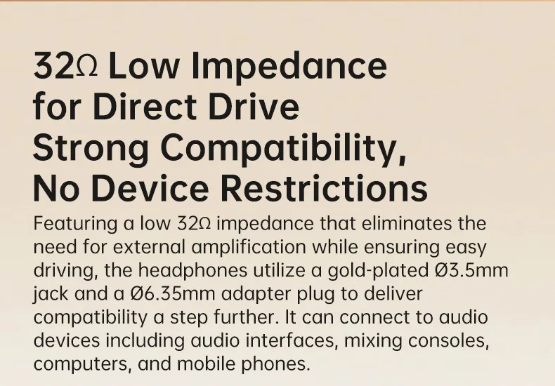 • Inclui adaptador Ø6,35 mm para compatibilidade com uma ampla gama de dispositivos de áudio.