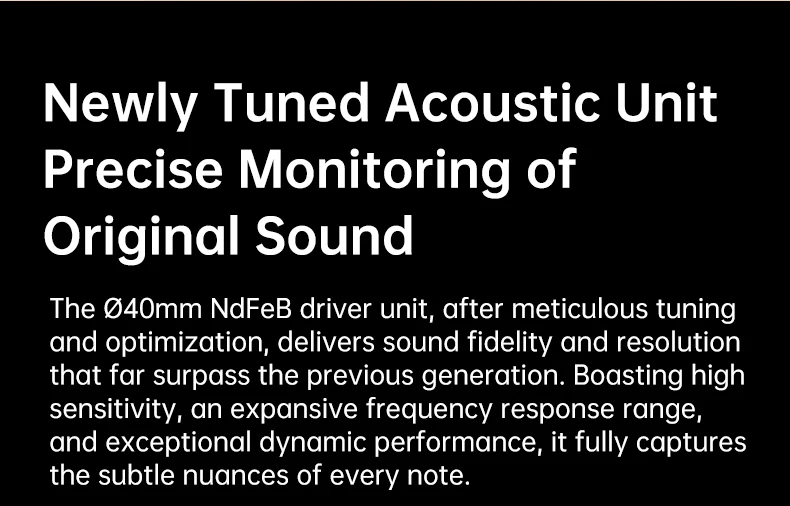 • O novo driver NeFeB de Ø40 mm produz excelente sensibilidade, resposta e dinâmica.