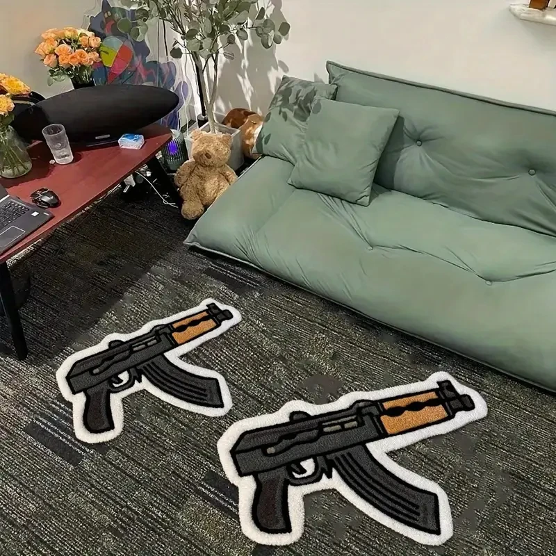 Tapete com design de rifle estilo desenho animado VIKAMA, tapete de cabeceira de quarto confortável e antiderrapante, item de decoração para casa