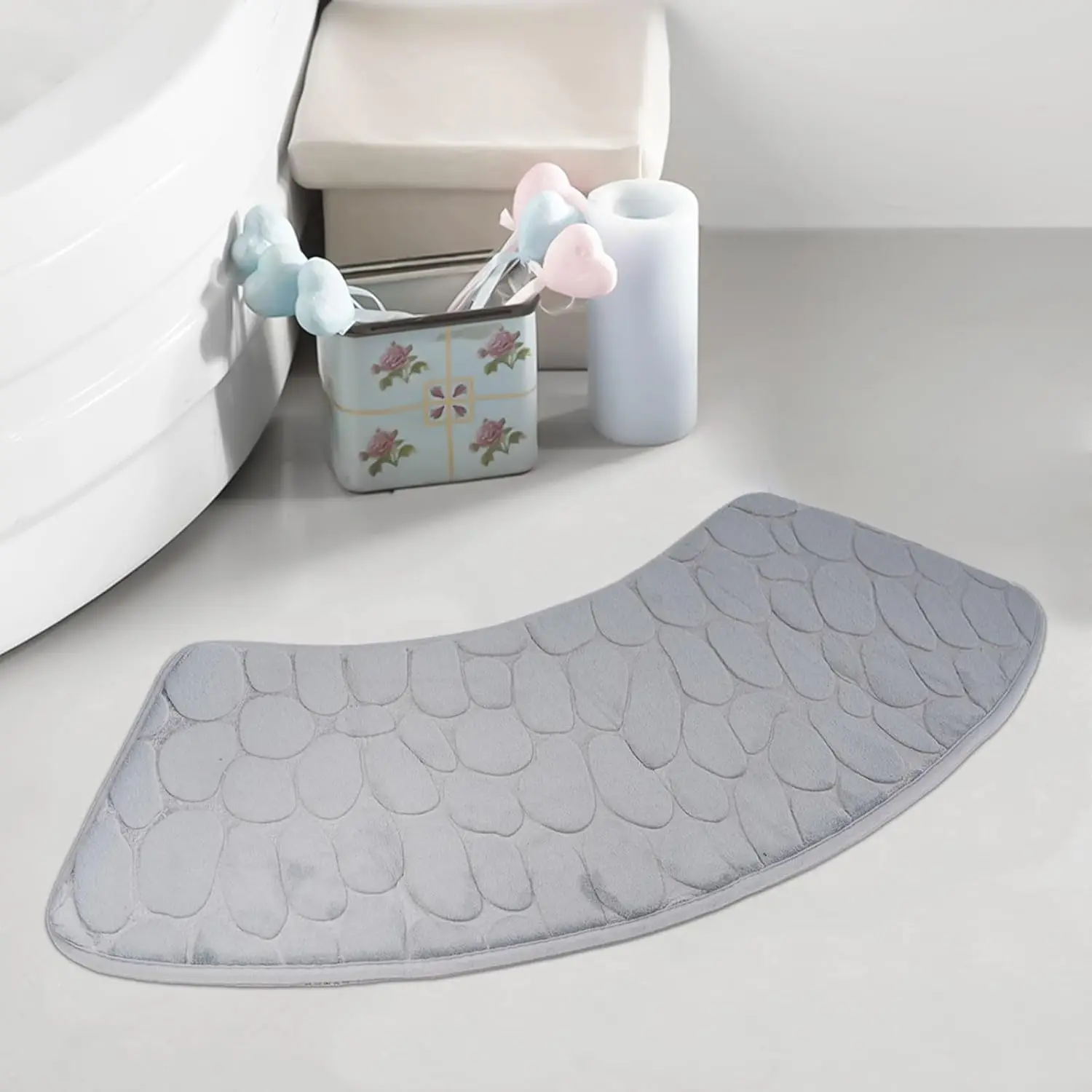 Tapete de banho curvo tapete de banho de canto antiderrapante absorvente lavável adequado para banheiro e lavanderia