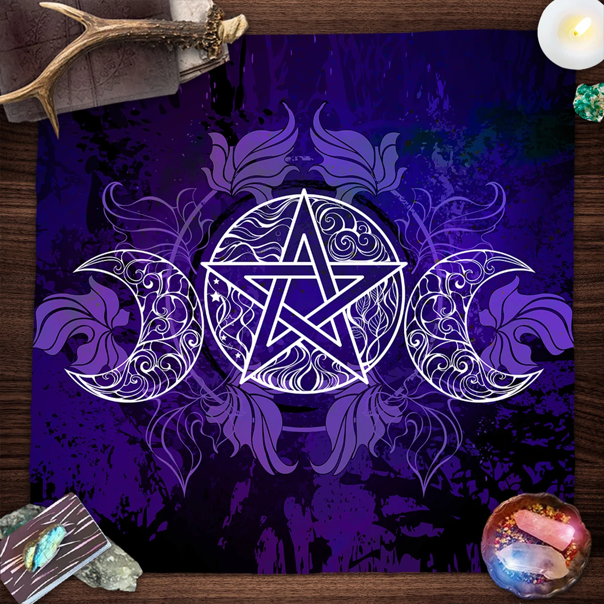 Tapete de cartas de tarô roxo lua tripla toalha de mesa de tarô design deusa bruxa pano de altar adivinhação tarô cartão pano de mesa decoração de casa