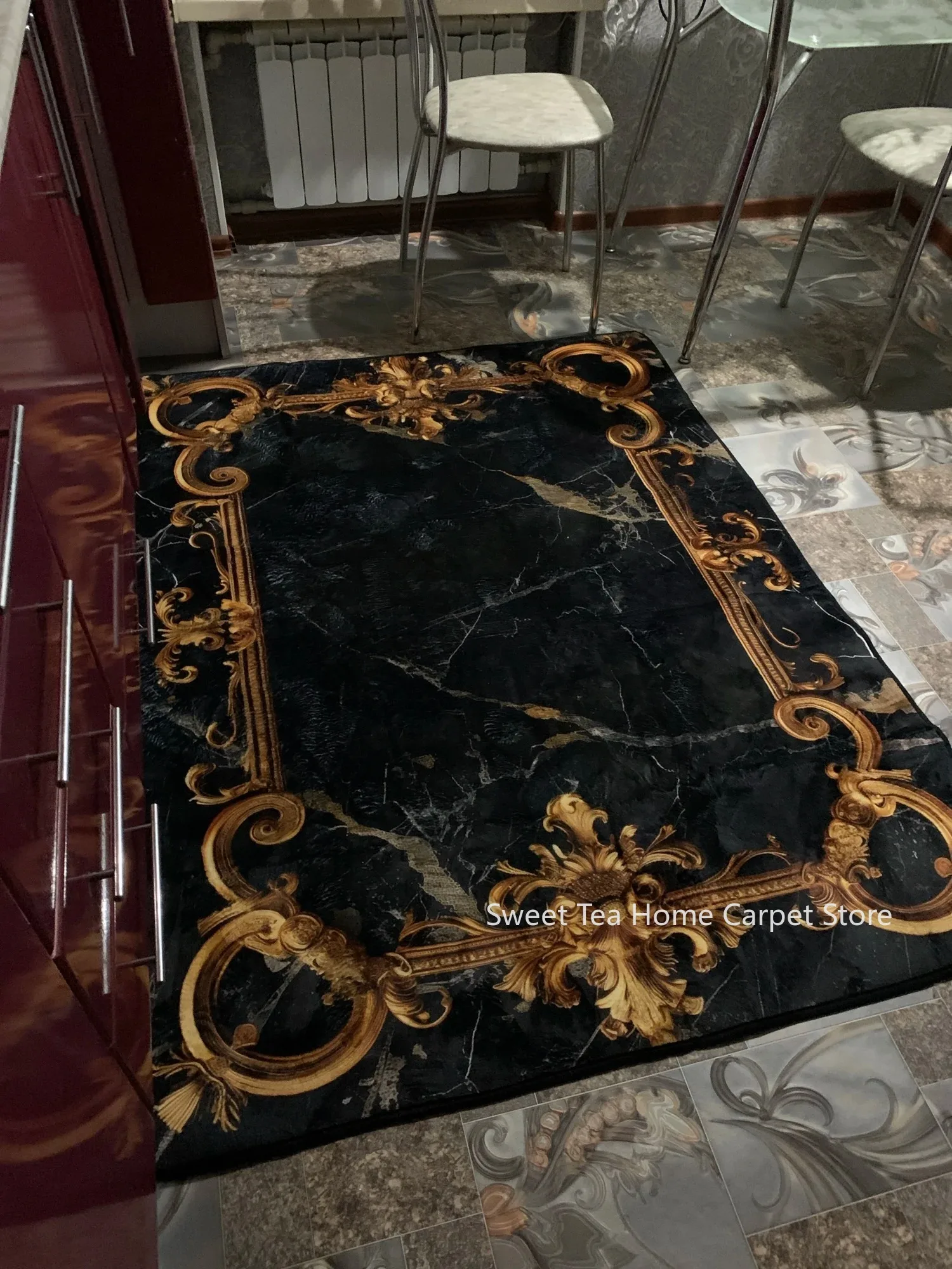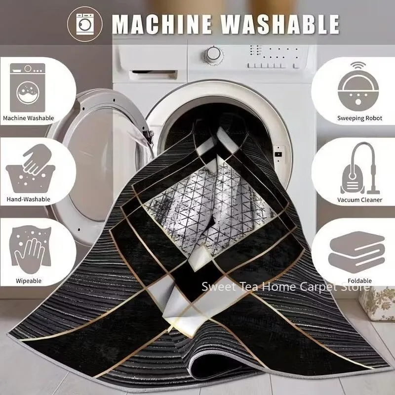 Tapete de Luxo Moderno em Mármore para Cabeceira, Antiderrapante, Lavável à Máquina, Decoração para Quarto, Tapete Macio e Fofo para Sala de Estar 200×300