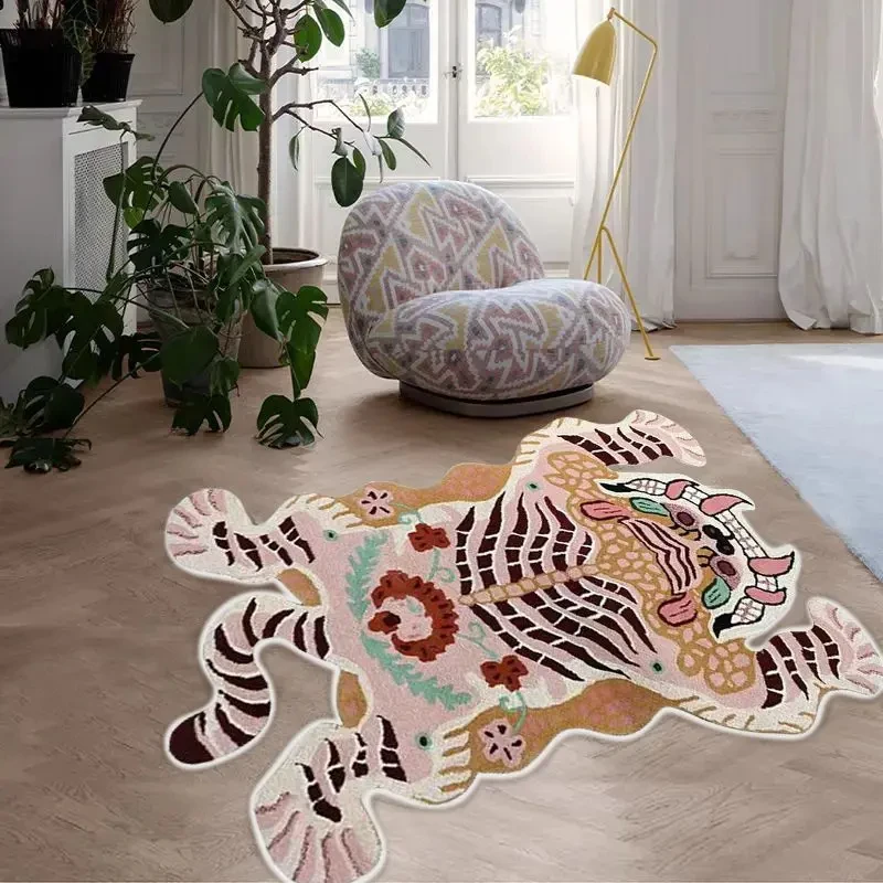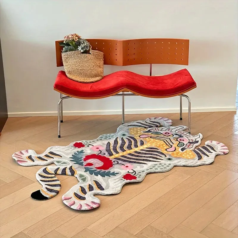 Tapete em forma de tigre VIKAMA – Tapete de cabeceira quente e antiderrapante para quarto, tapete de sala de estar, decoração de casa