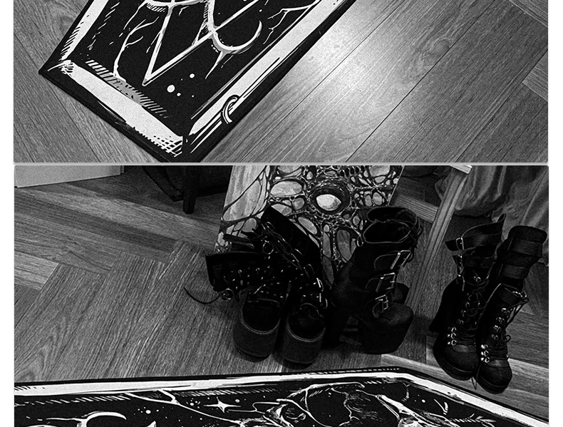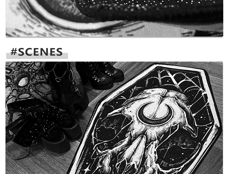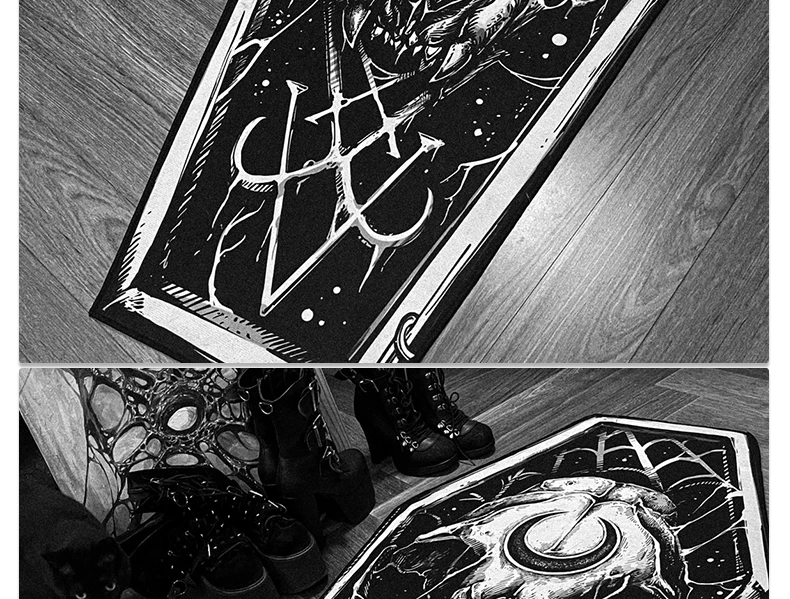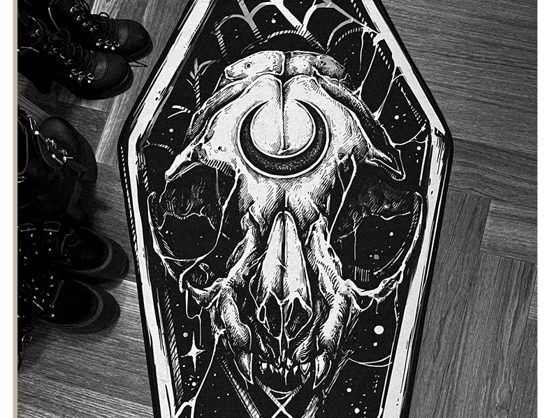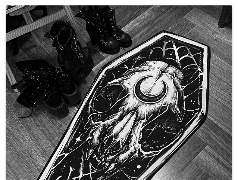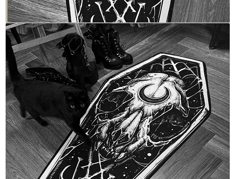 - > Tapete gótico preto escuro, tapete gótico, quarto, sala de estar, halloween, decoração de casa, tapete longo, cabeceira, tapetes em formato de caixão