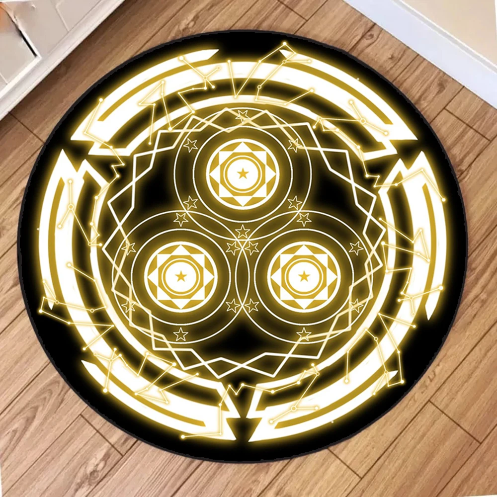 Tapete redondo com padrão de círculo mágico, estilo anime, antiderrapante, resistente a manchas, durável para sala de estar, sala de jogos, decoração de casa
