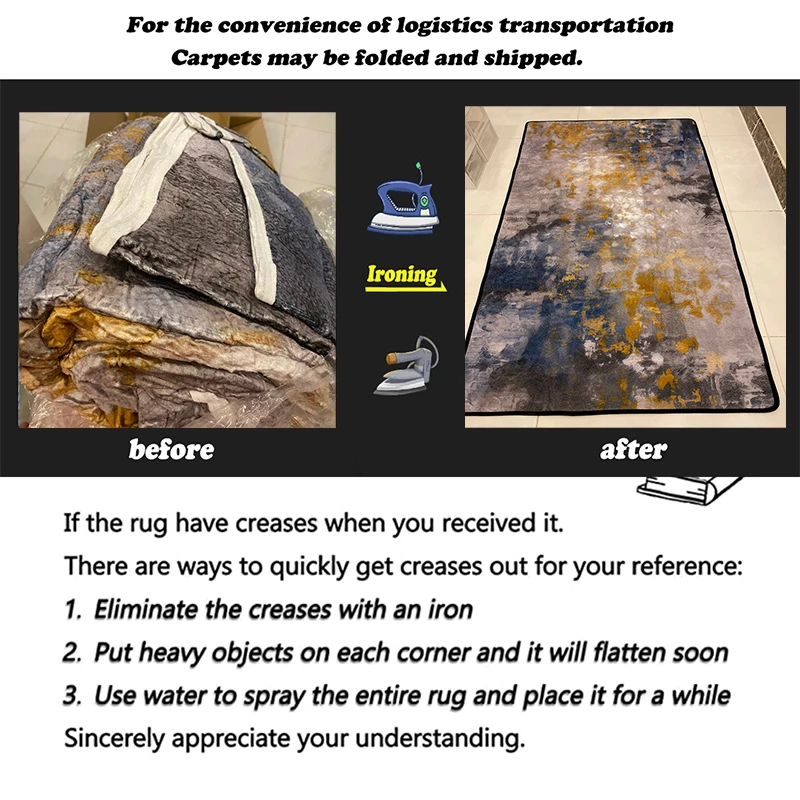 Devido ao volume do tapete ser muito grande, ele só pode ser embalado dobrado.É inevitável que haja vincos, o que não é um problema de qualidade.O vinco desaparecerá com o tempo e também pode ser resolvido passando a ferro.Espero que você possa entender. Como este produto é um tecido especial, não se preocupe com vincos óbvios.