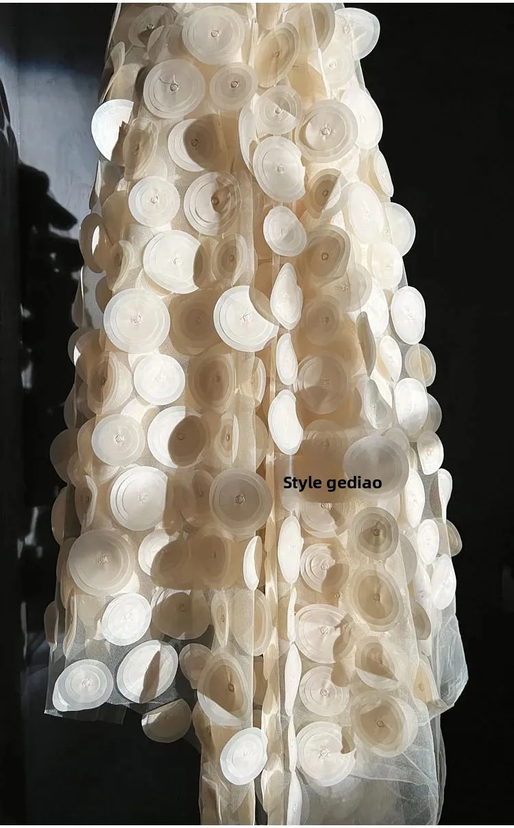 Tecido de Malha Apricot Claro com Textura Pesada, Vestido com Corte Circular, Tecido Designer para Material de Costura DIY