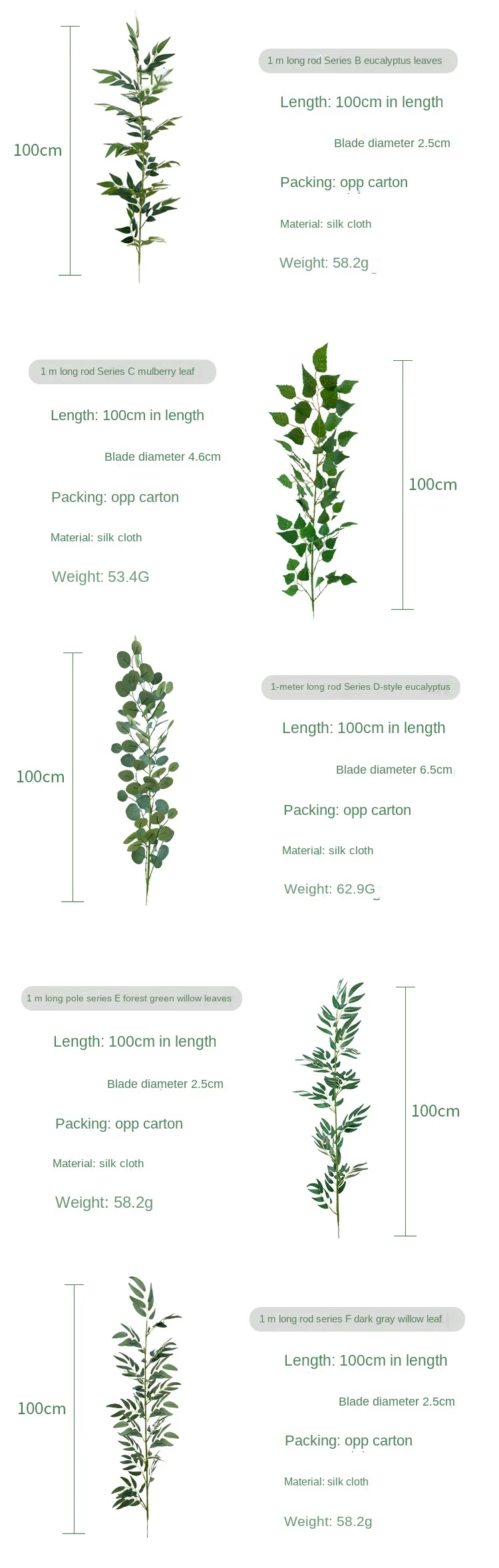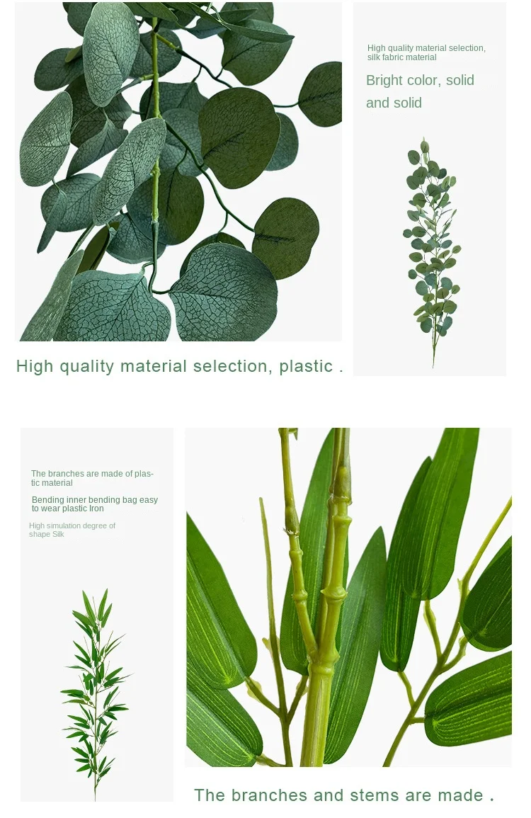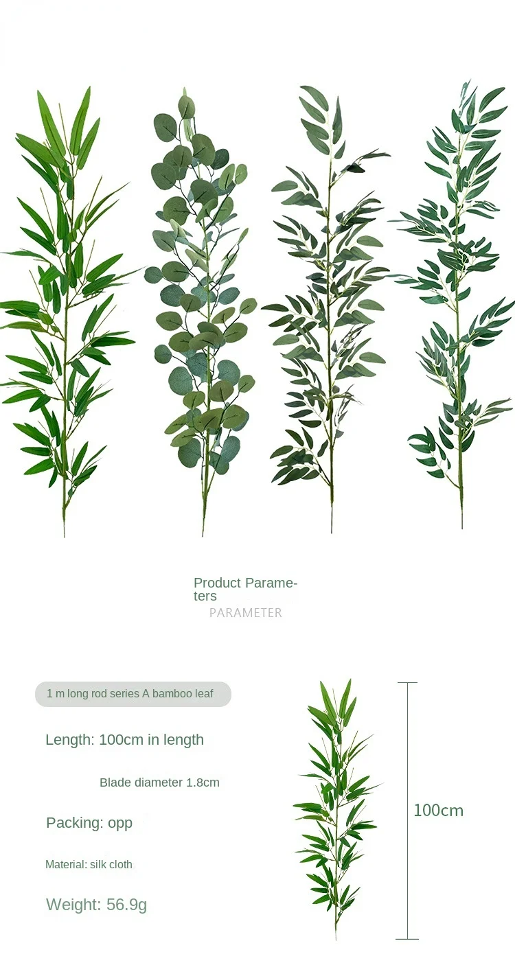 - > Tecido de seda alça folha de bambu arranjo de flores decoração plantas de primavera artificiais único 1m de comprimento folhas de eucalipto