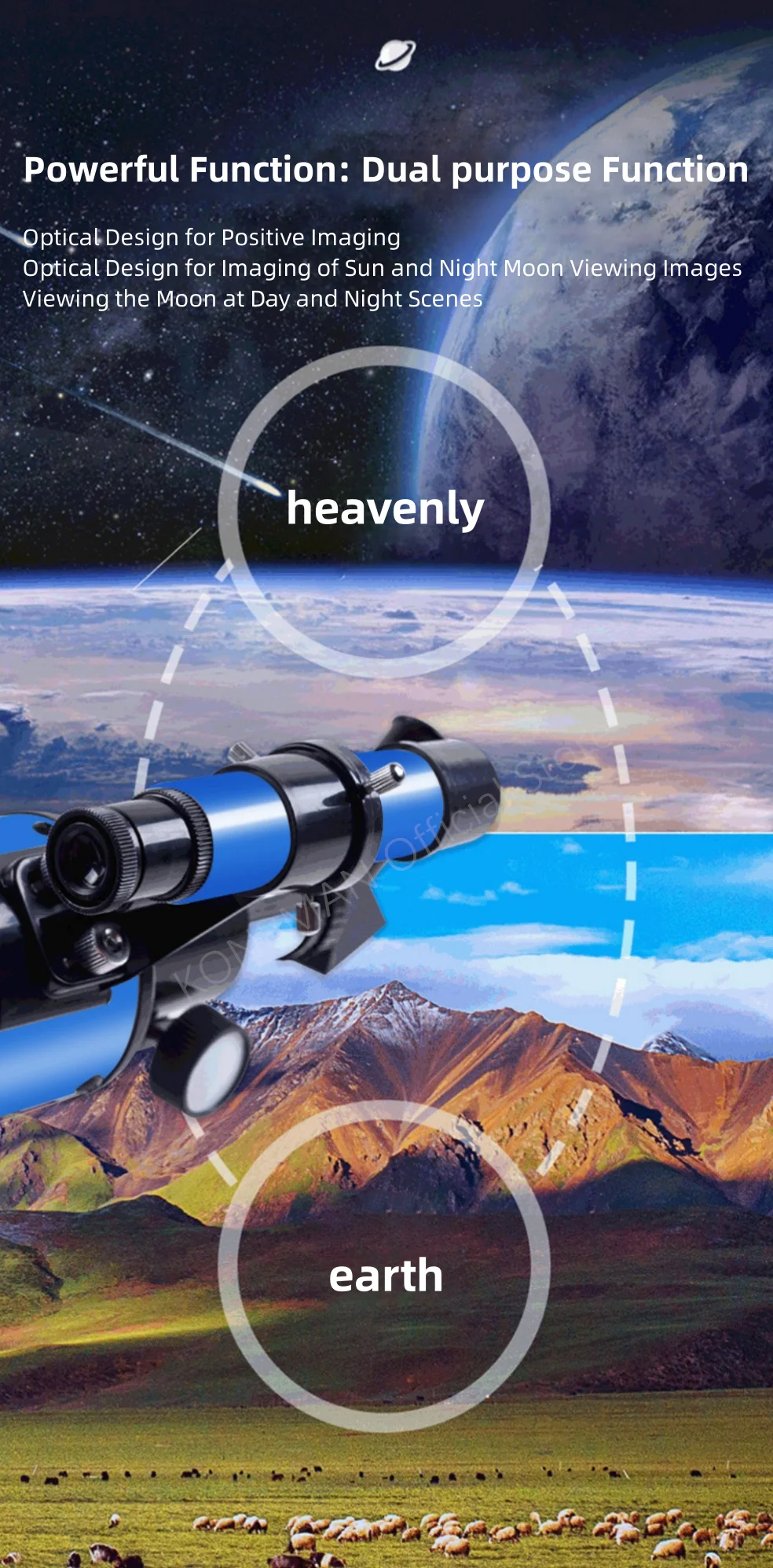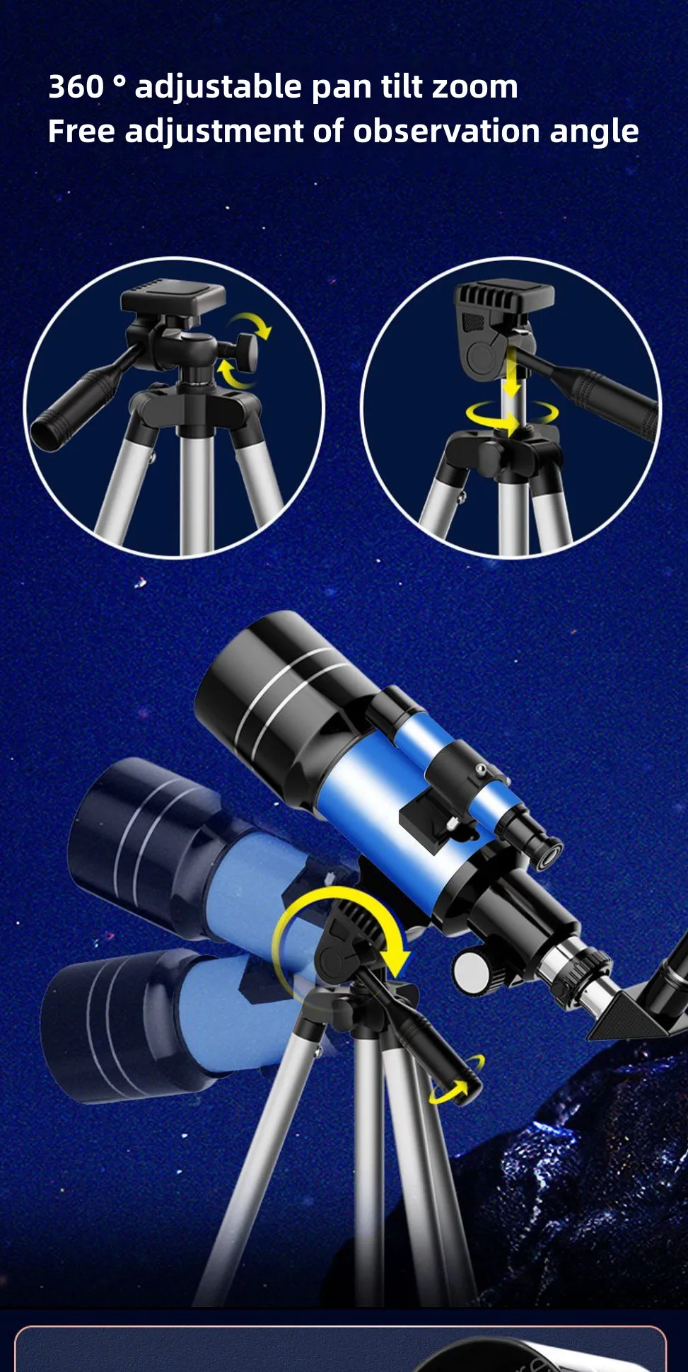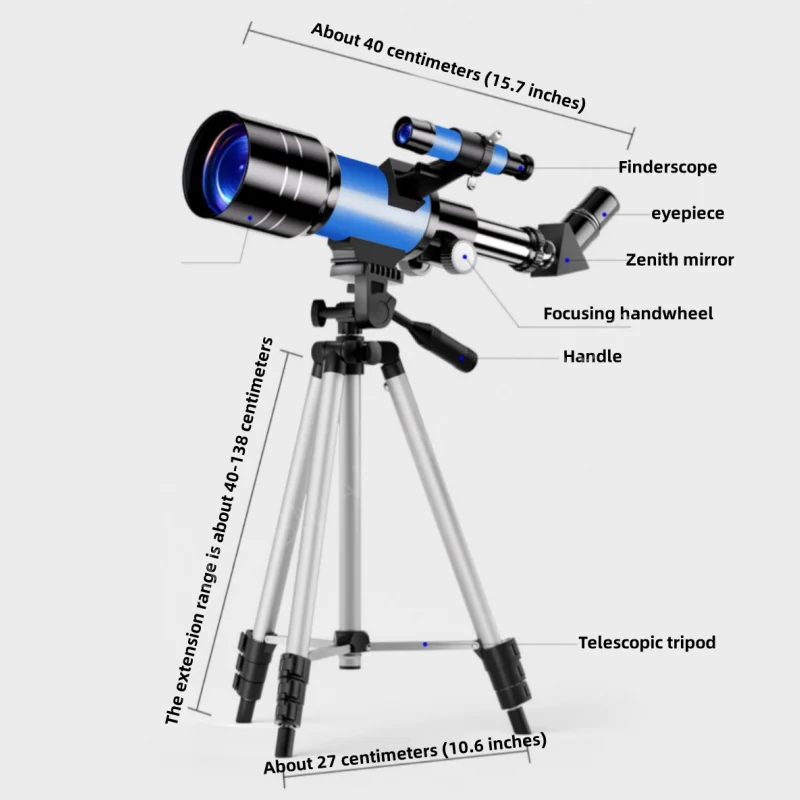 - > Telescópio refrativo de abertura de 70mm para adultos e crianças Telescópio portátil para iniciantes em astronomia Telescópio de viagem