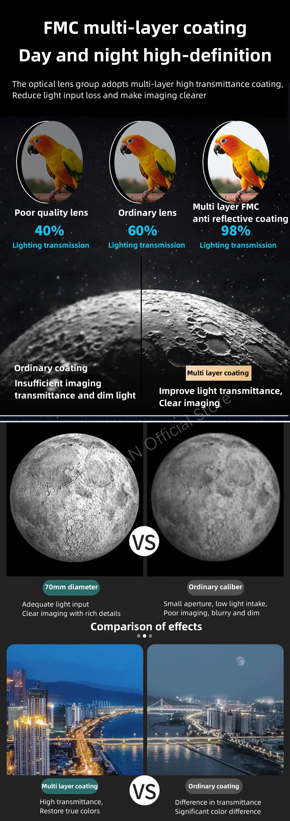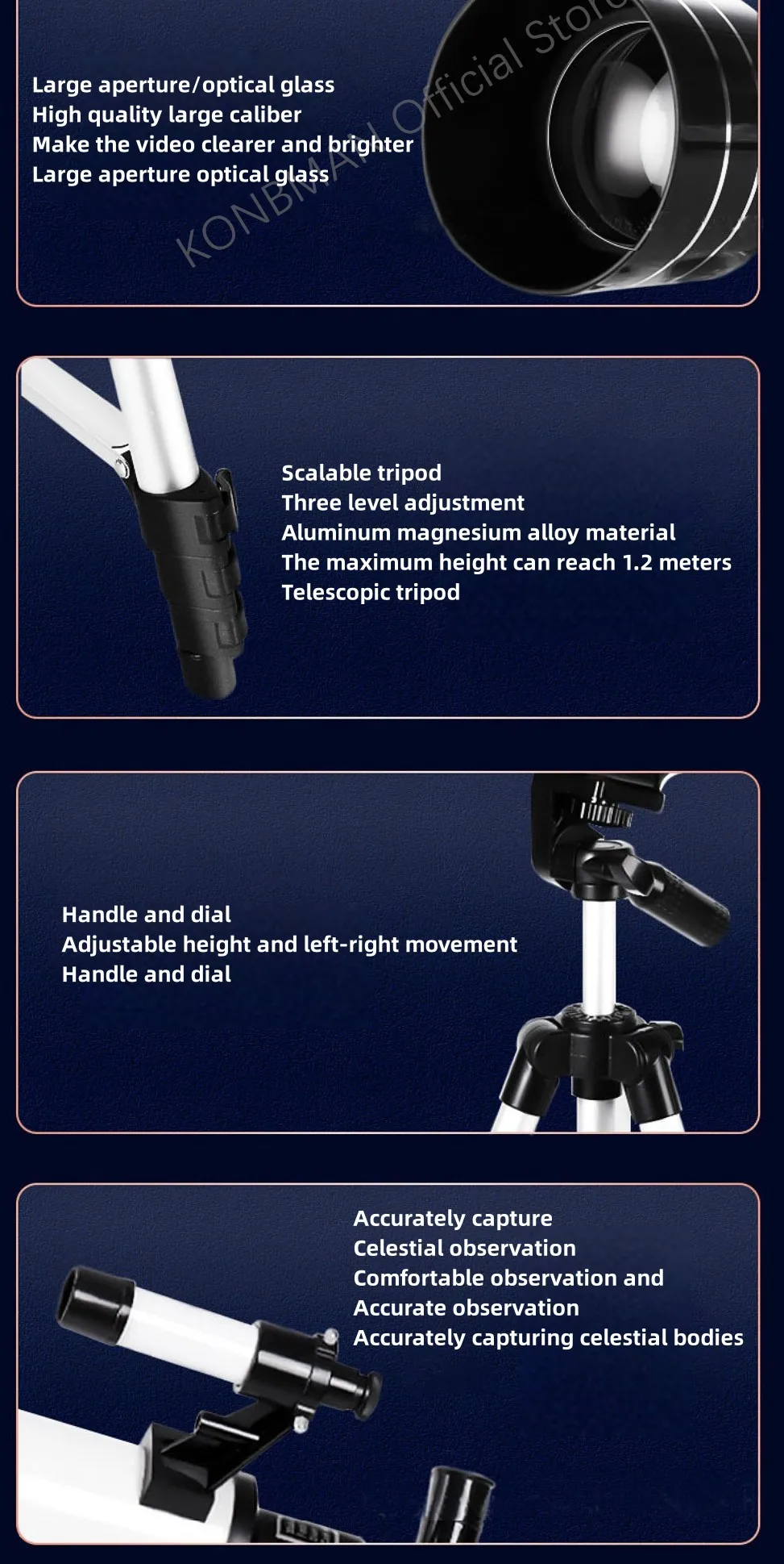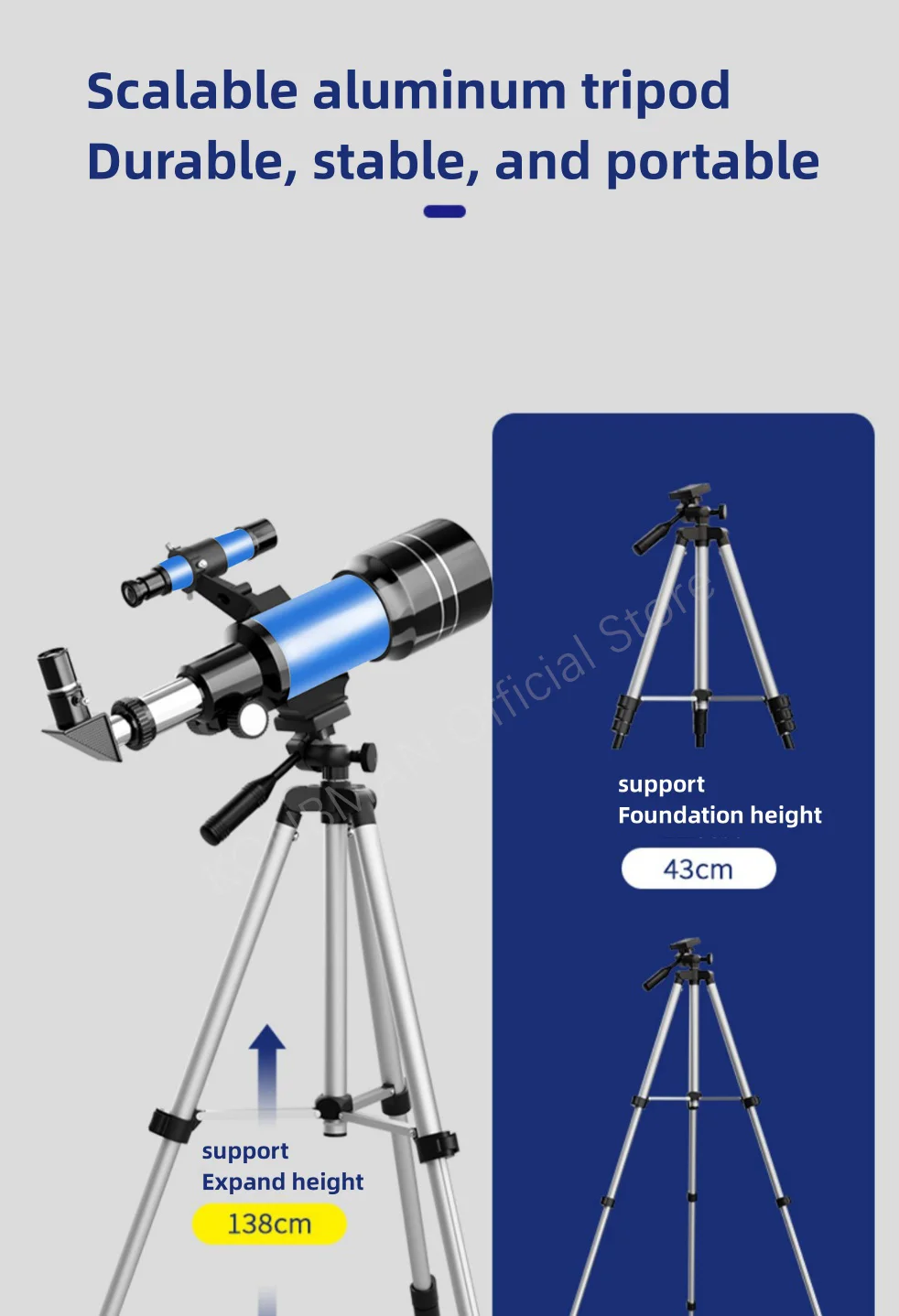 - > Telescópio refrativo de abertura de 70mm para adultos e crianças Telescópio portátil para iniciantes em astronomia Telescópio de viagem