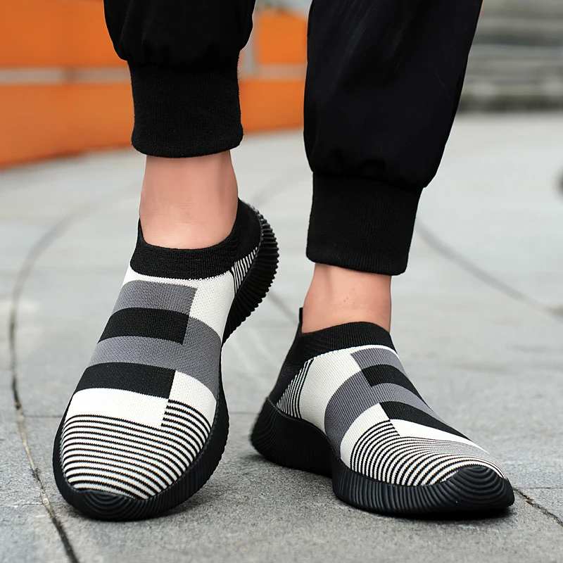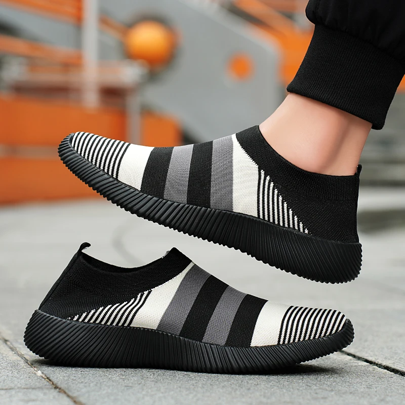 Tênis Masculino de Caminhada em Malha, Calçado Casual Respirável para Atividades ao Ar Livre, Corrida e Viagem, Sapatilhas Slip-on com Sola Macia