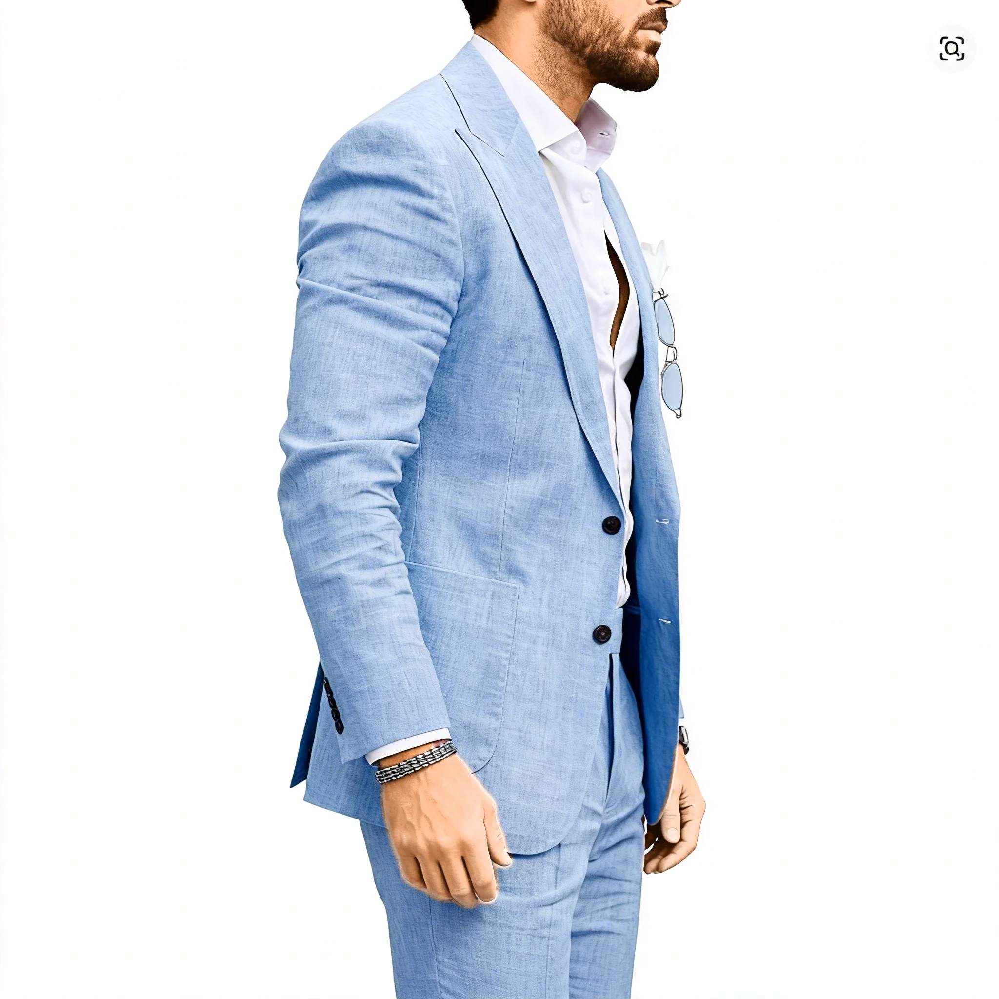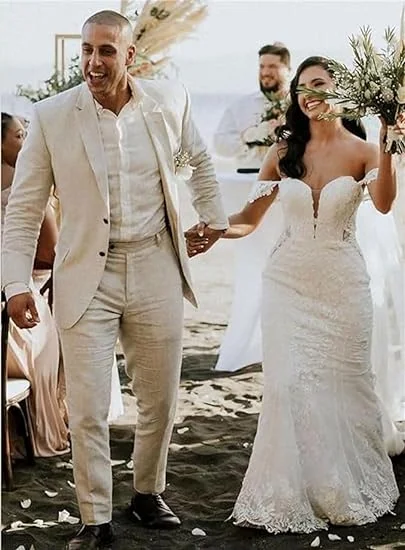 - > Terno de linho masculino para casamento na praia, slim fit, 2 peças, smoking de casamento para homens, casual, terno de linho, festa de baile