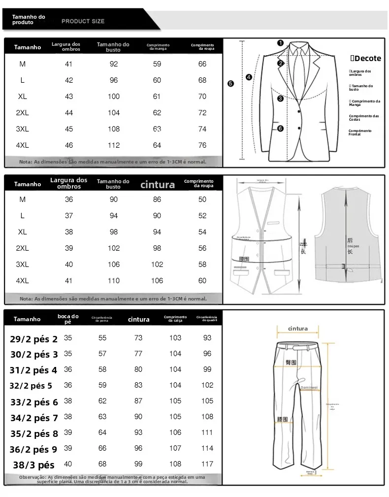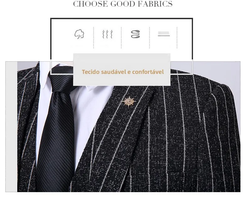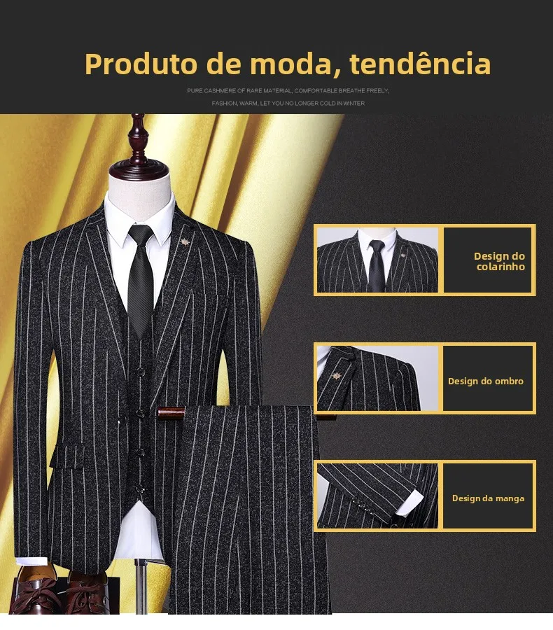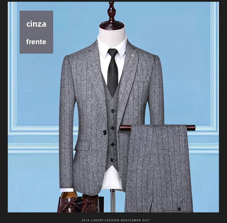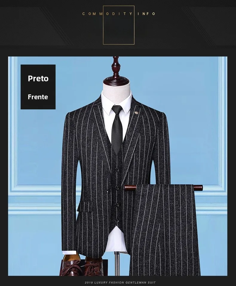- > Terno Masculino de Três Peças para Casamento, Padrinhos, Roupa Formal, Tecido de Mistura de Aodão, Corte Slim, Esti...