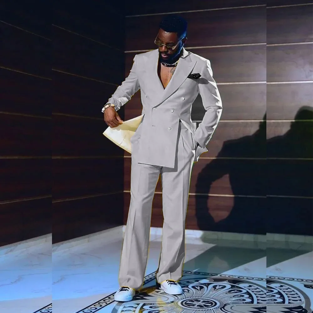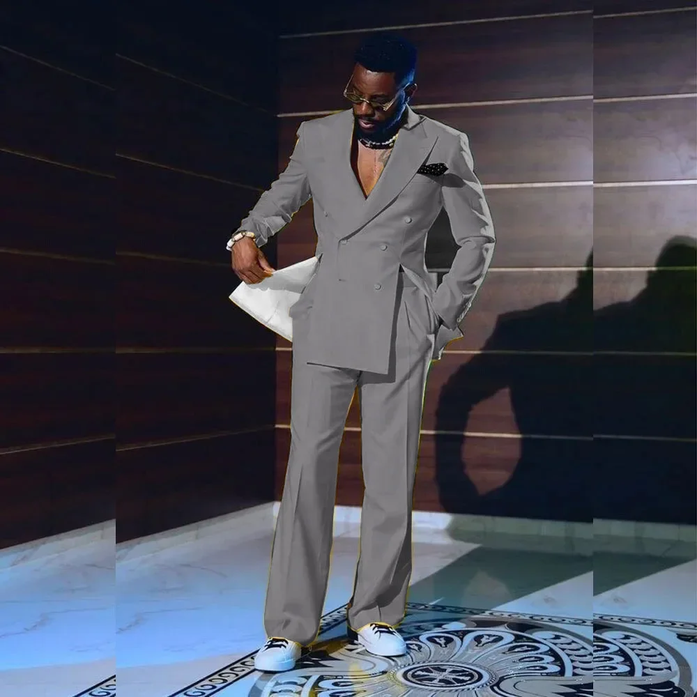 Terno masculino elegante cor sólida duplo breasted lapela repicada luxo 2 peças jaqueta calças vestido personalizado completo