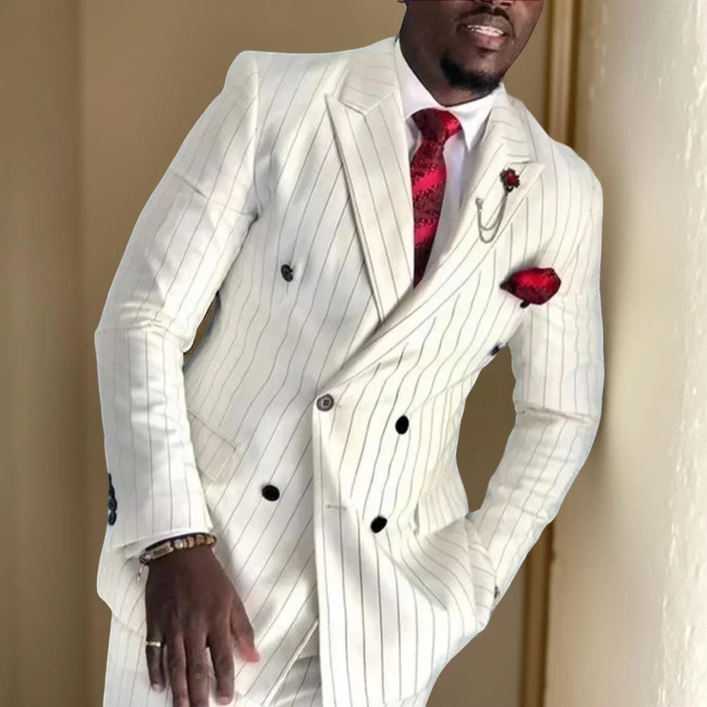 - > Ternos de casamento listrados para homens, smoking duplo breasted, 2 peças, conjunto estilo listrado, jaqueta com calças, terno formal personalizado