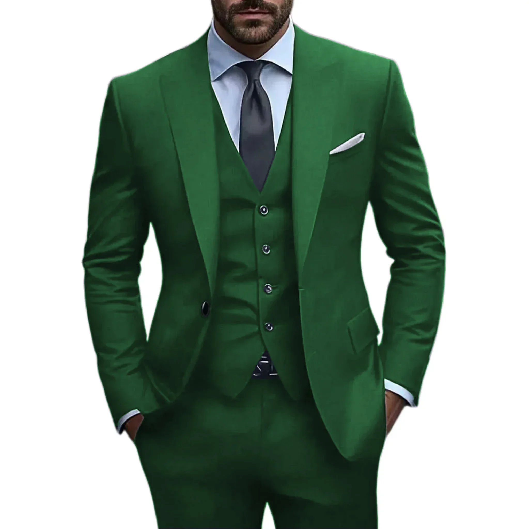 - > Ternos formais de cor sólida, terno verde cerceta para homens, terno masculino elegante, um botão, banquete, traje de palco, negócios