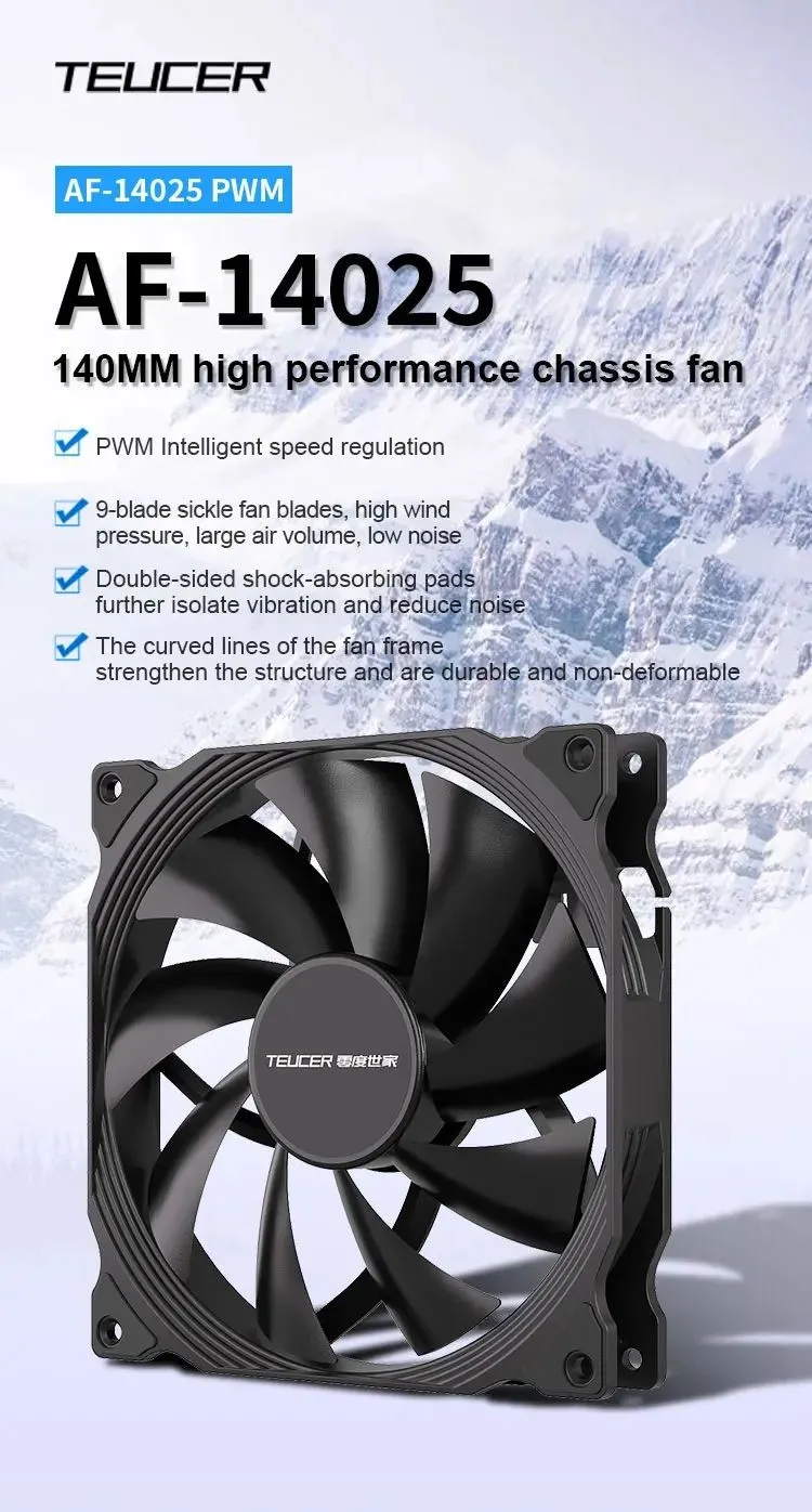 Teucer af 14025 pc caso ventilador de refrigeração 12v 4pin pwm mhdb rolamento hidráulico branco 14cm ventilador silencioso para computador radiador ventilador