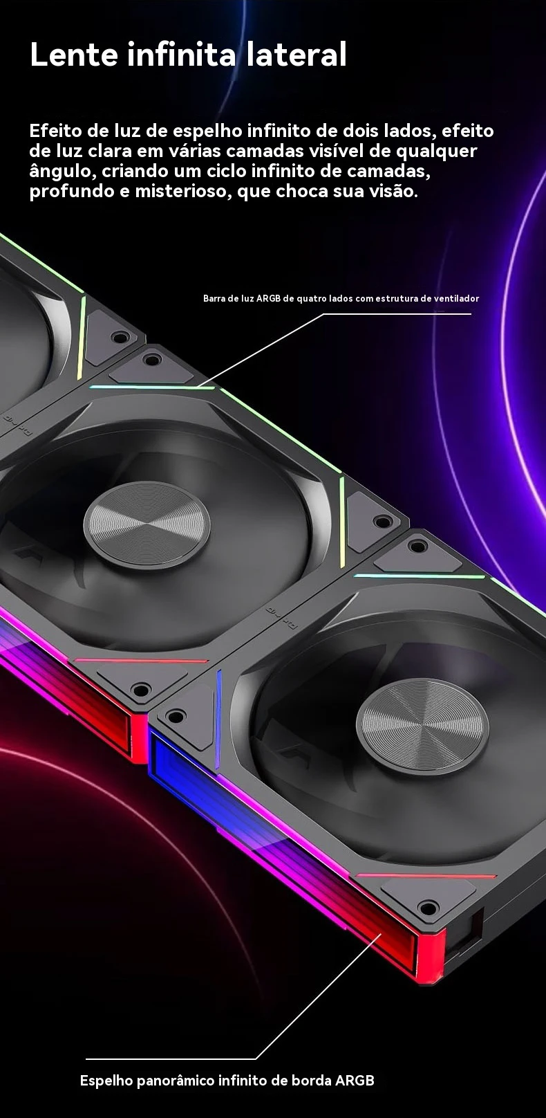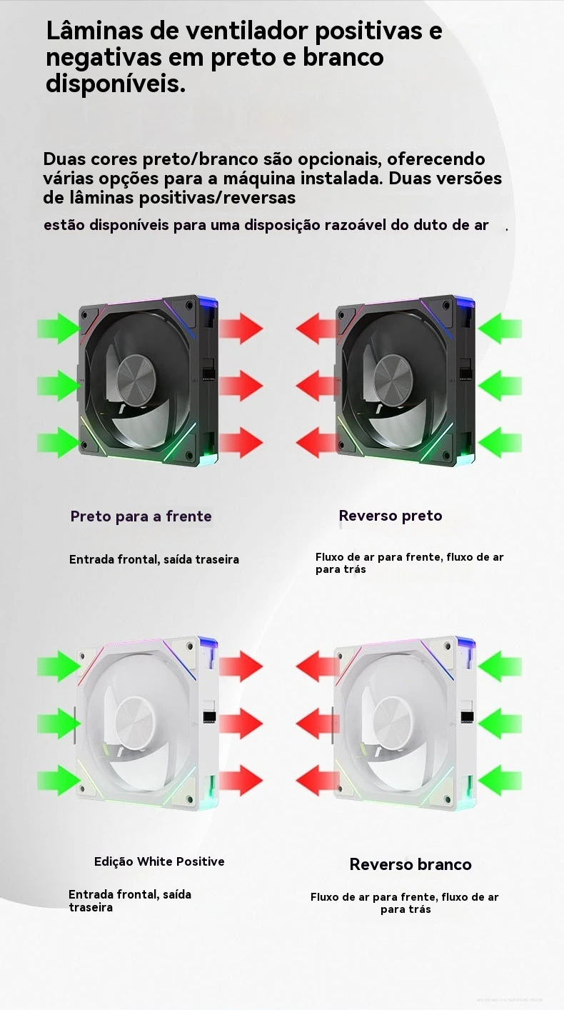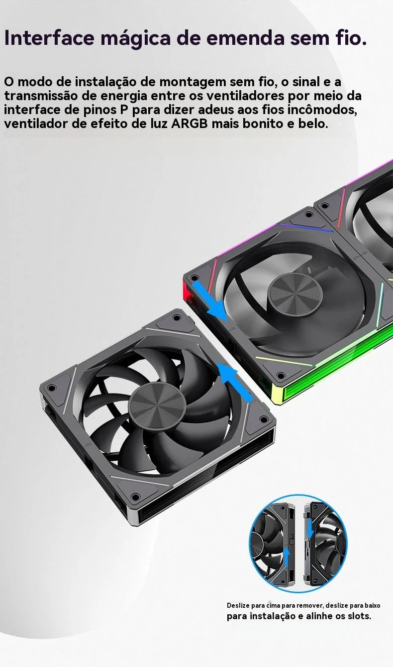 Modo de instalação de montagem sem fio, os ventiladores transmitem sinais e energia através da interface P-pin, eliminando fios pesados e o ventilador de efeito de luz argb é mais lindo e bonito.
