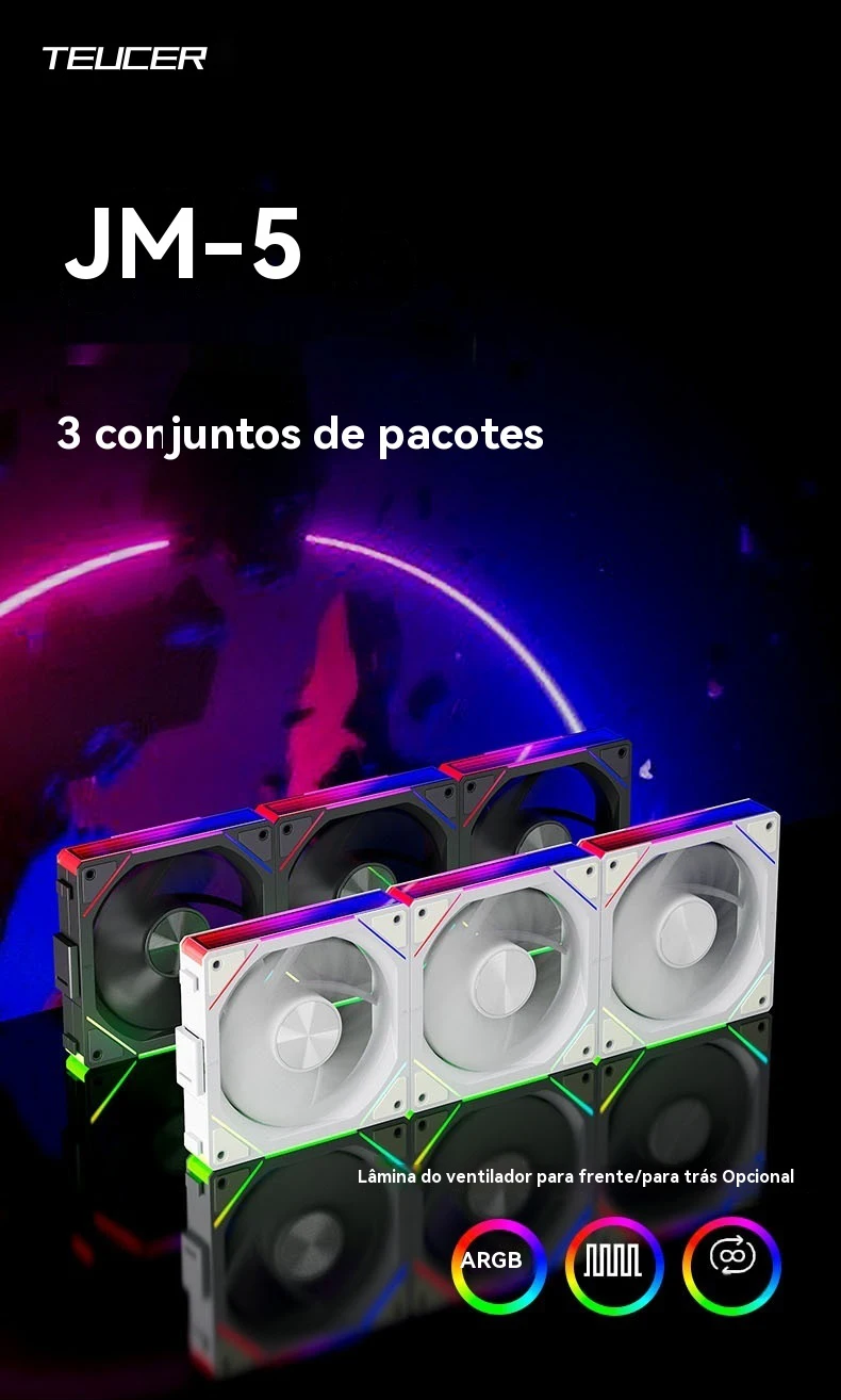 - > Teucer JM-5 Caso ventilador PC Argb Light CD Textura 12cm 3in1 PWM sem barulho 800-2000rpm Radador resfriamento água Ventilador