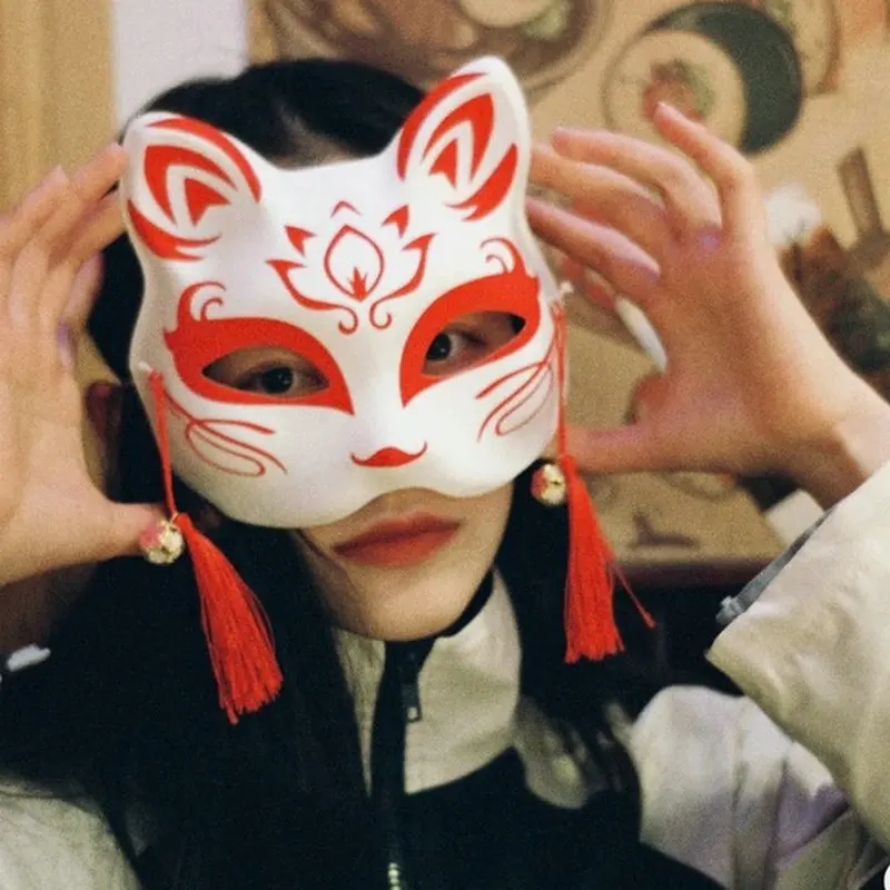 Therian máscaras de gato branco em branco diy máscara de halloween animal meia máscara facial masquerade cosplay festa