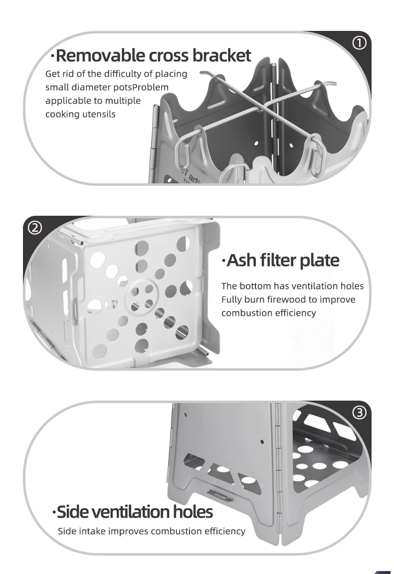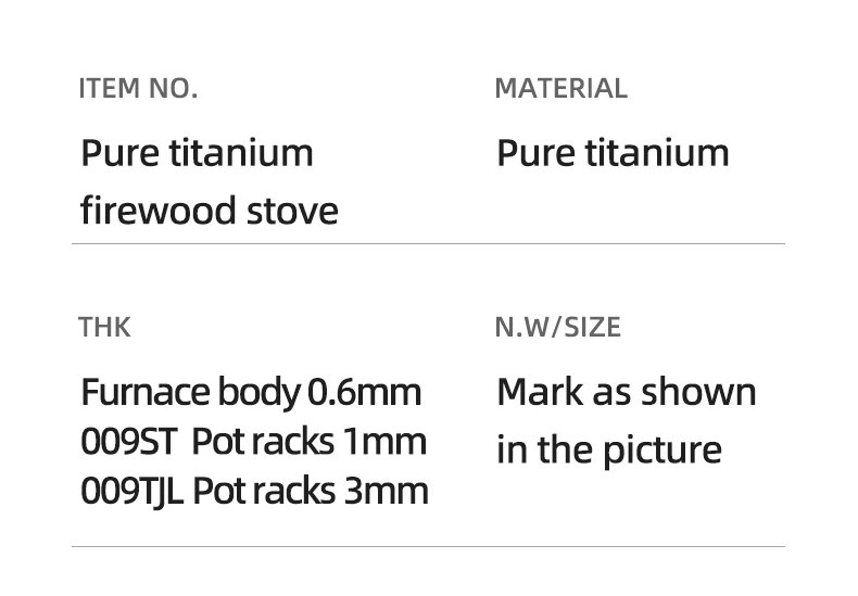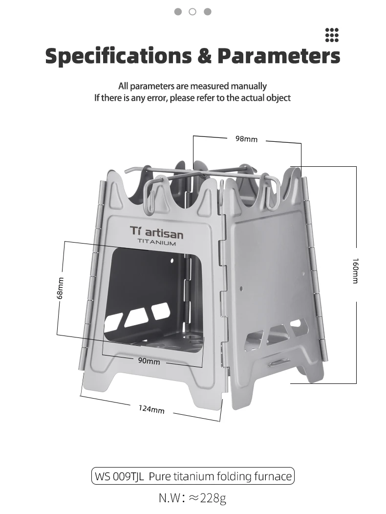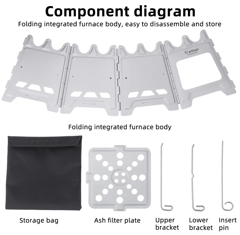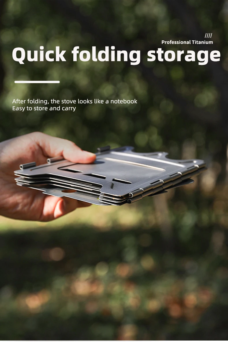 Nome do produto: titânio/aço inoxidável dobradiça dobrável design acampamento fogão a lenha portátil fogão a carvão