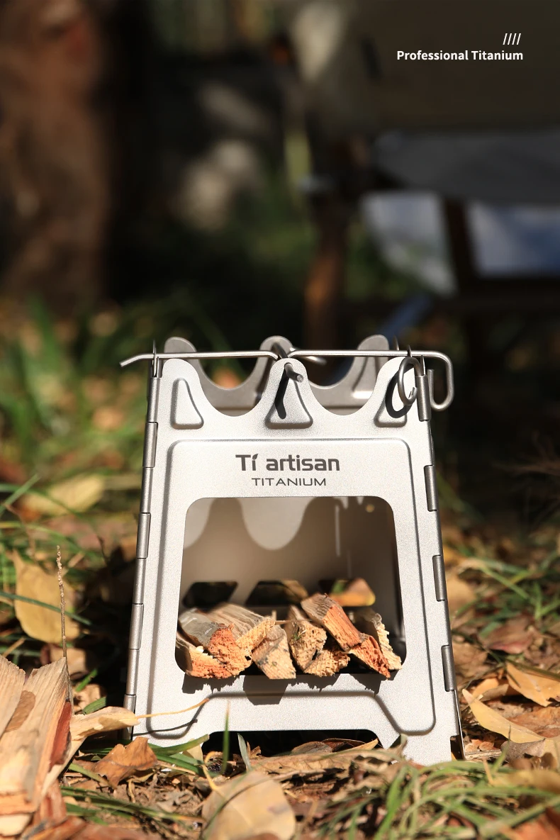 Tiartisan ao ar livre titânio puro/aço inoxidável fogão a lenha portátil dobradiça design fogão de acampamento dobrável fogão a lenha grill