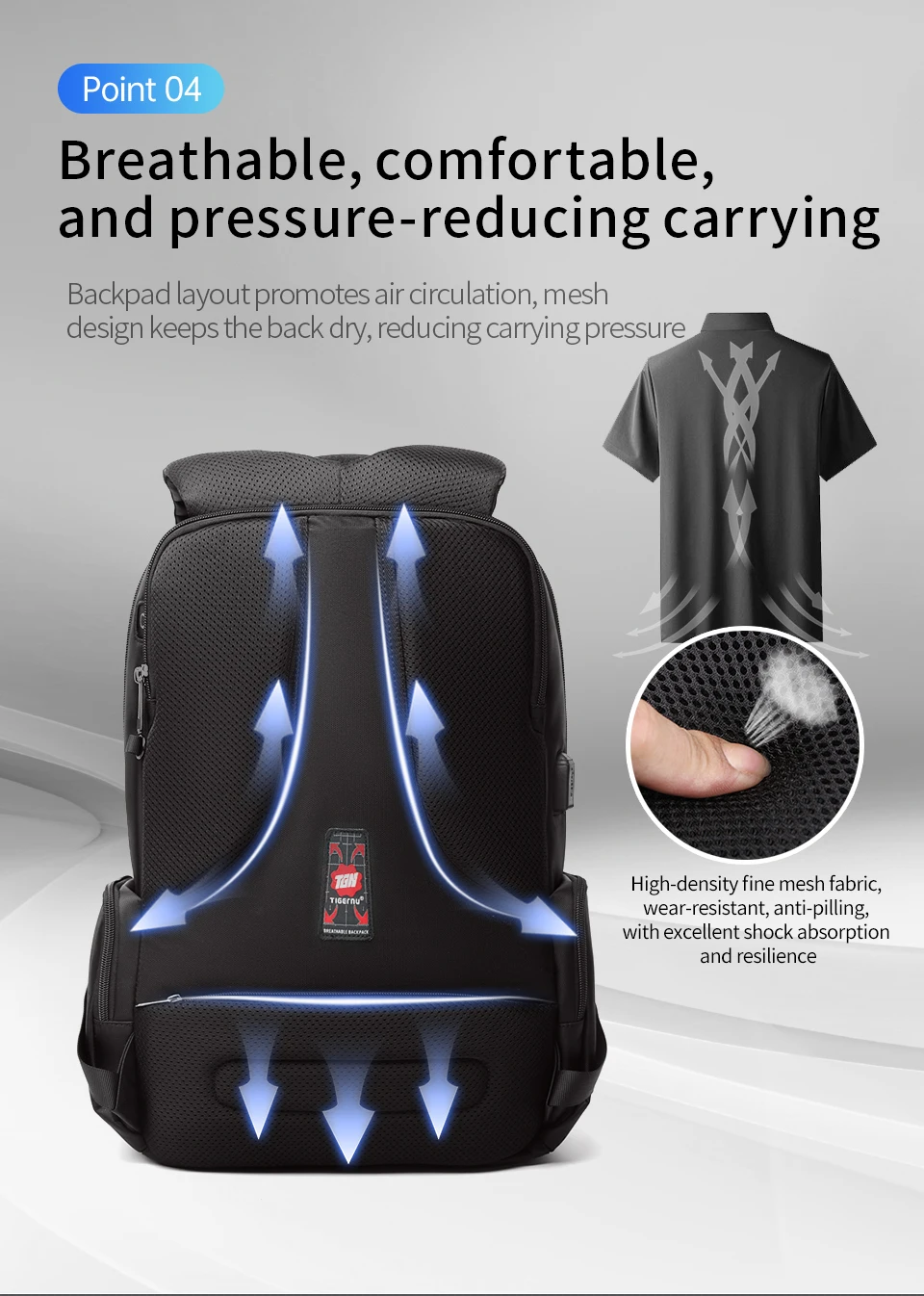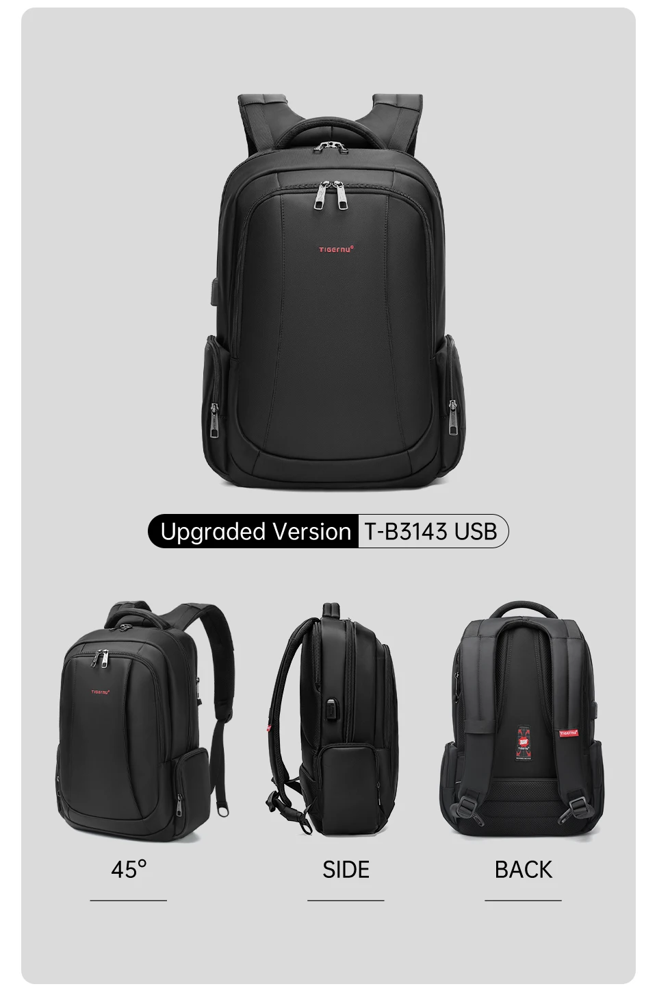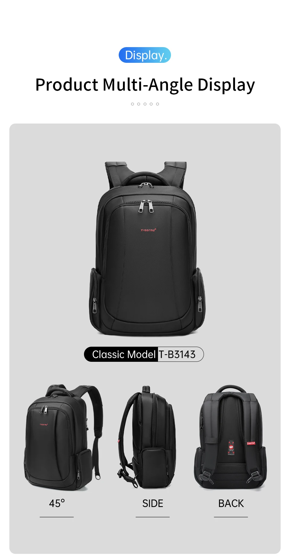 3.Versão clássica com design de grande capacidade de 30L e versão expansível com grande capacidade de 40L e bolsos multifuncionais: compartimento principal, compartimento independente para laptop, bolso traseiro oculto antirroubo, ect;