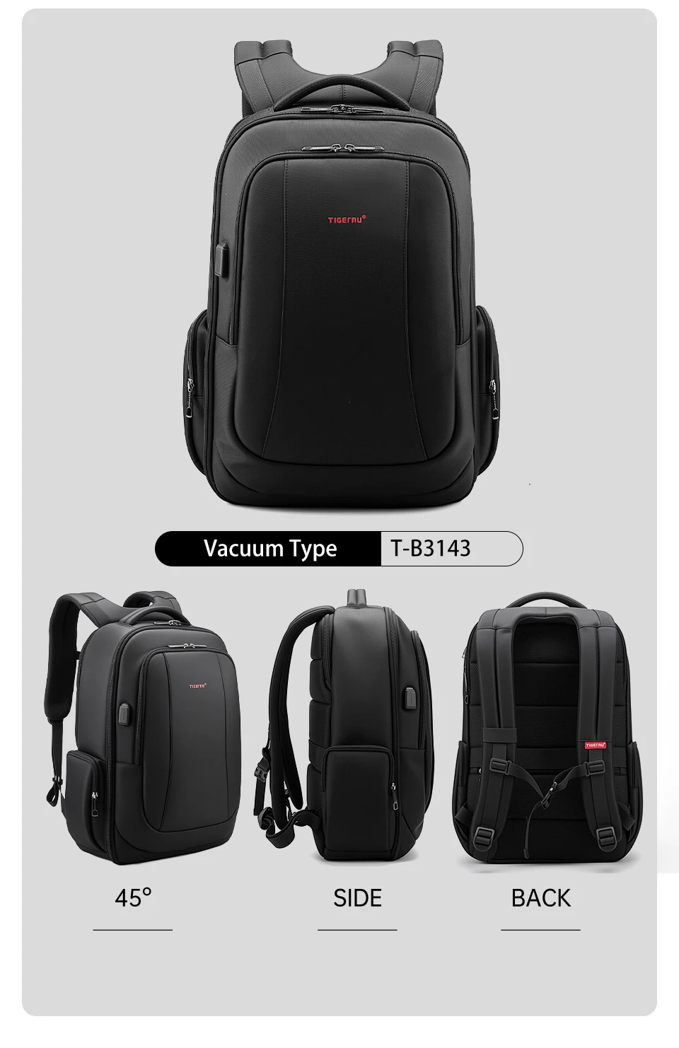 - > Tigernu mochila escolar masculina, mochila grande de viagem para compressão a vácuo, bolsa de 15.6 17 polegadas, porta usb, mochila de estudante