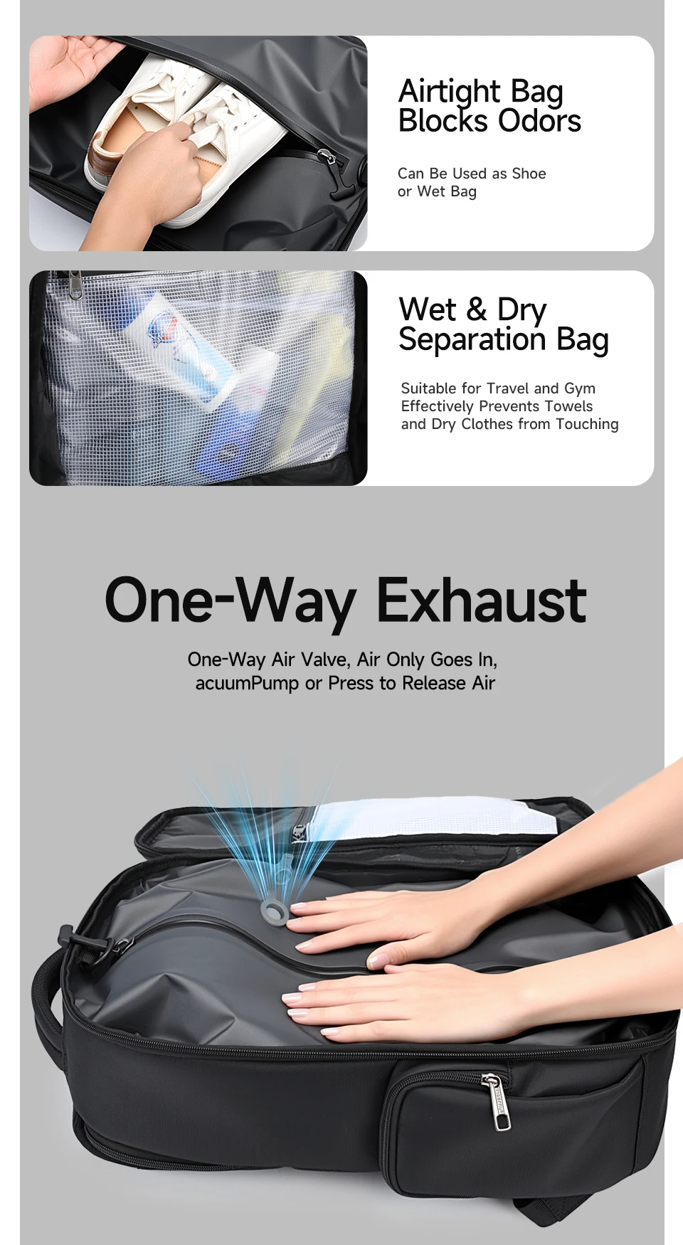 Type: Travel Backpack; School Backpack; Student Backpack; Cabin Bags; Large Capacity; Compressed Backpack; Commpression Bags; Knapsack